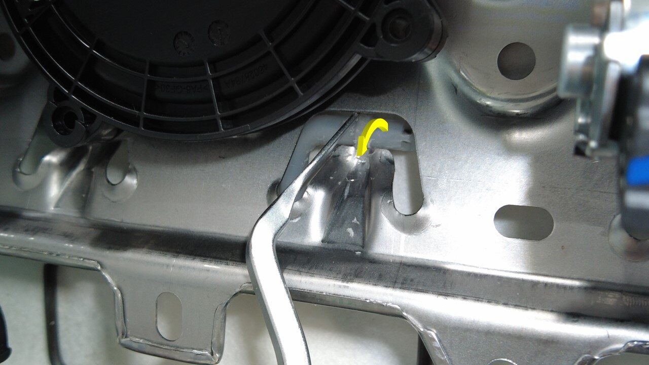 注使用 90 度尖凿松开支架背面的卡子。
