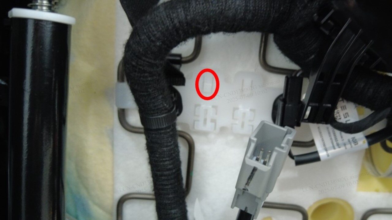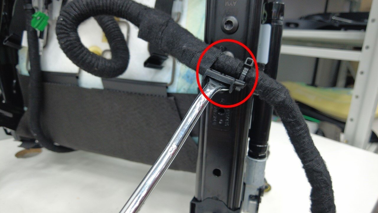 安装将驾驶位座椅线束固定到座椅外侧滑轨的夹子。