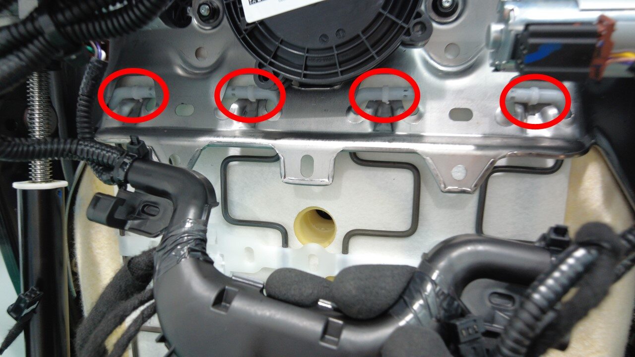 安装将线束固定到驾驶位座椅底部的夹子(位于座垫加热器连接器旁)。