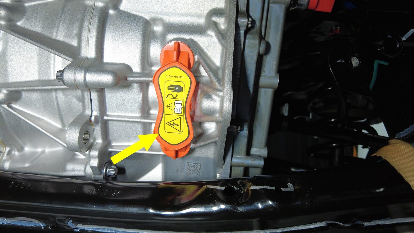 - 将后驱动单元高压电缆从高压电池上断开并置于一旁。请参阅后驱动电机高压线束 ((拆卸和更换))。