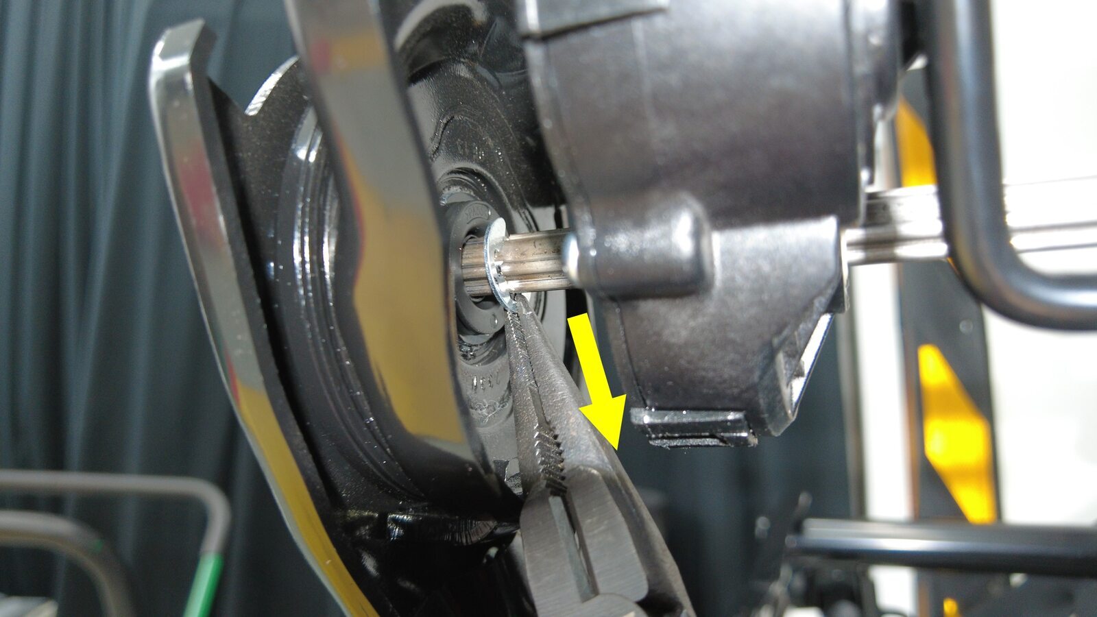 将 omega 卡环从左侧座椅靠背倾角调节轴上拆下。