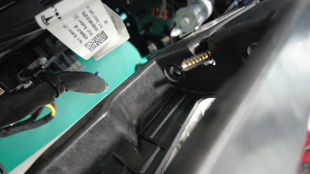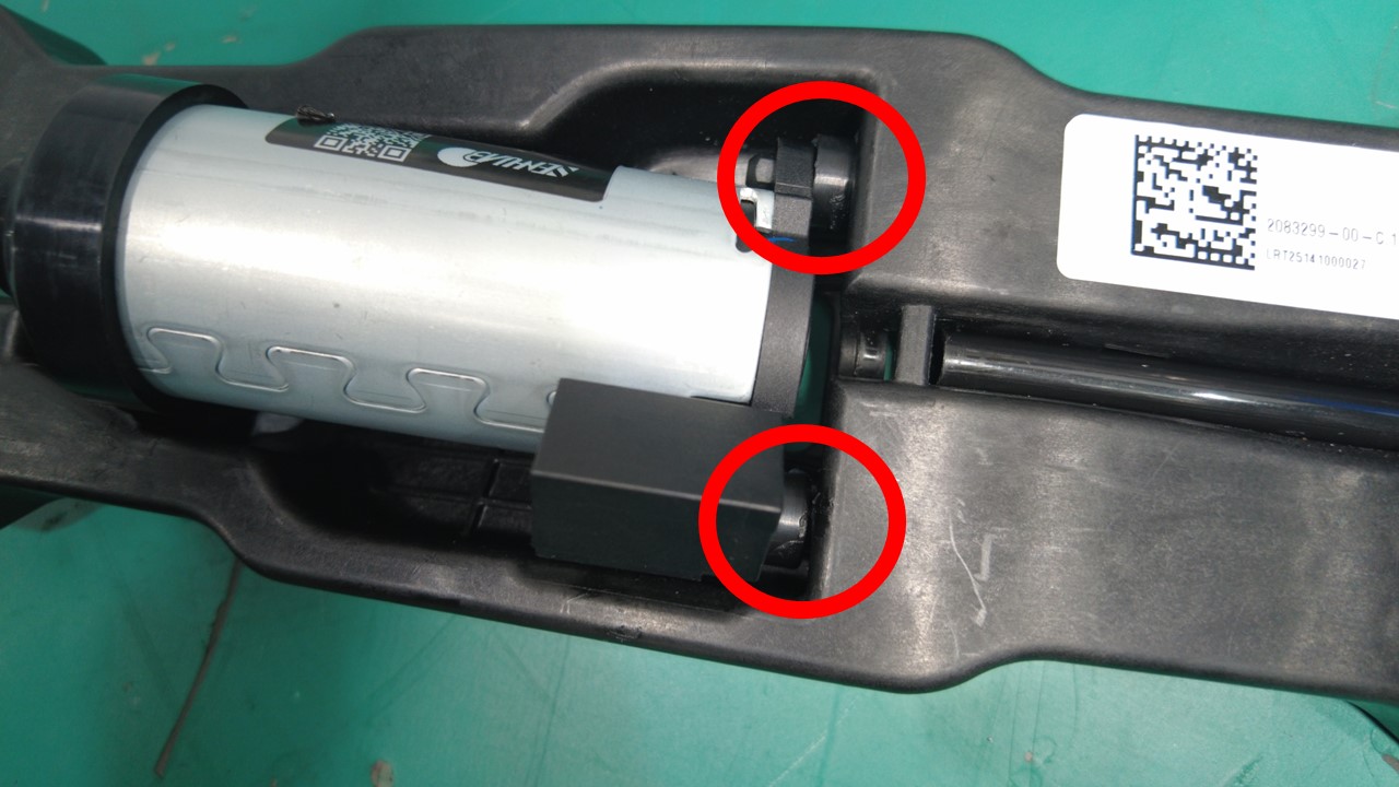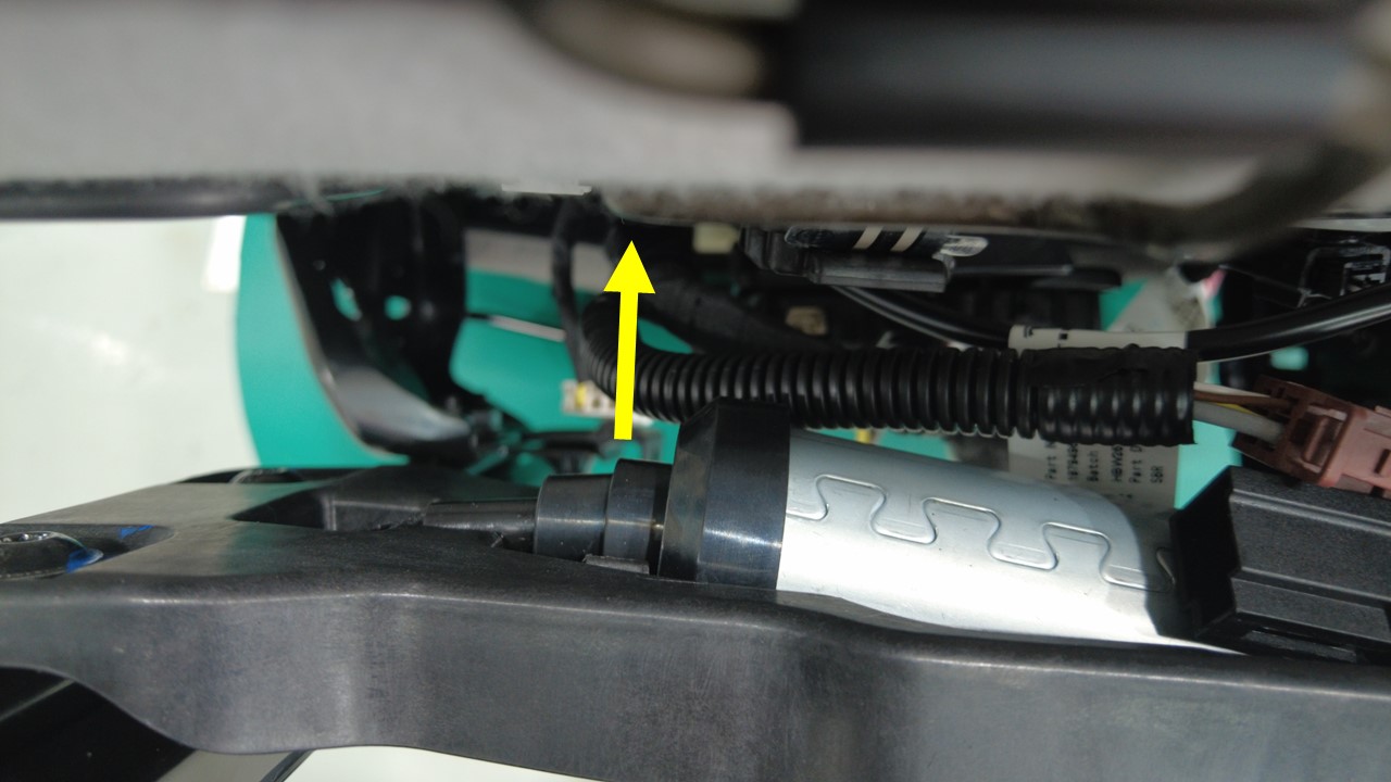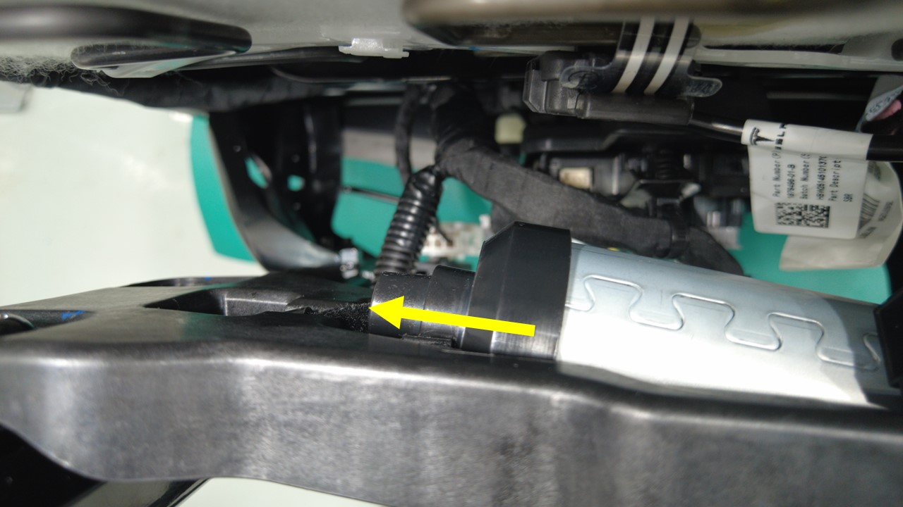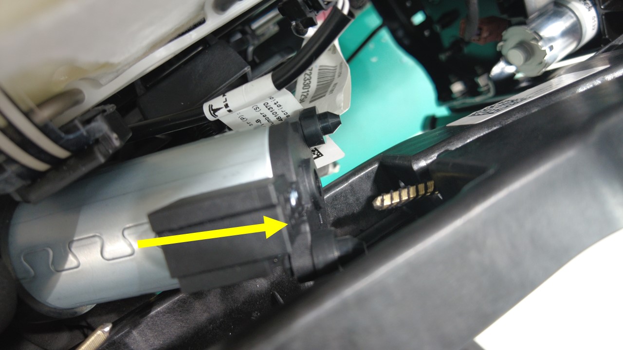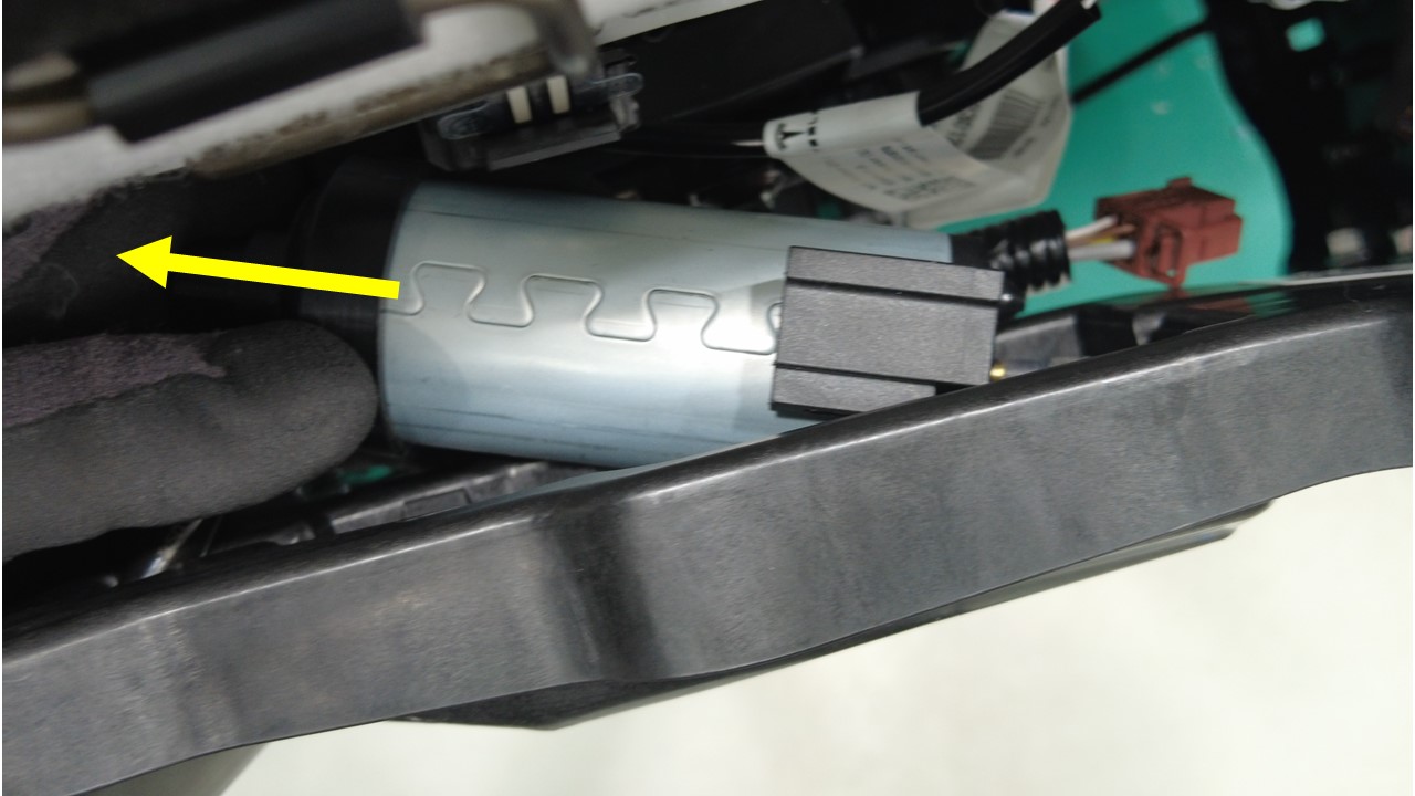 - 安装完成后,确认电机的橡胶定位销已紧紧插入电机桥架塑料支架总成中。