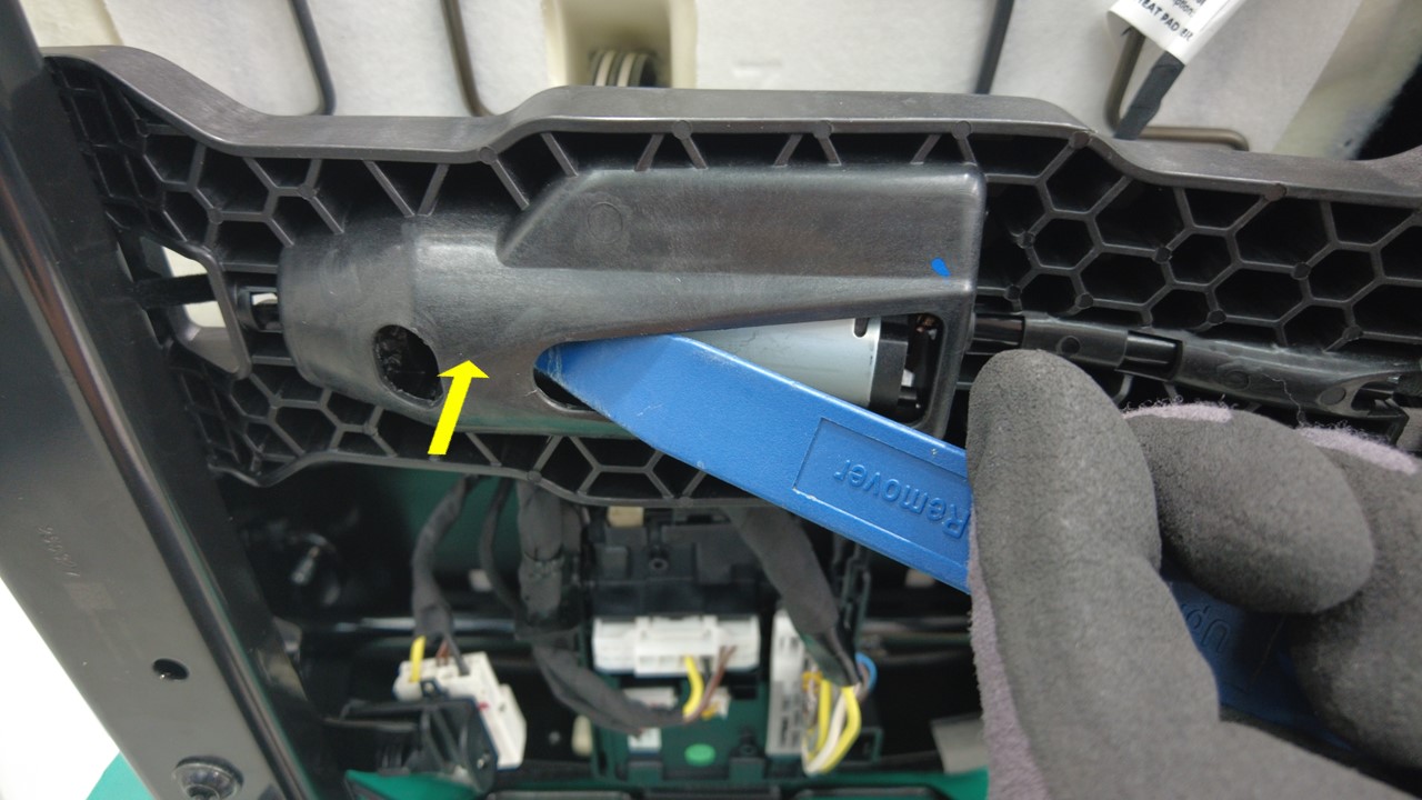 将第二排左侧座椅滑轨电机从长轴侧拆下。