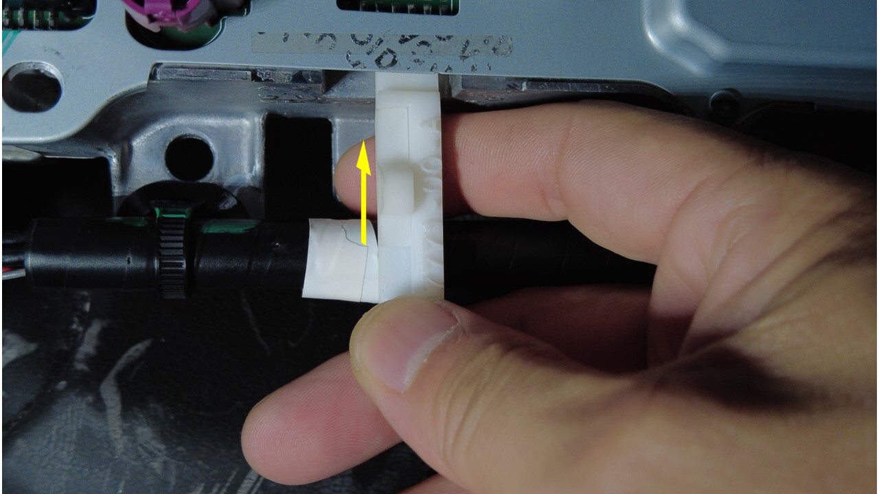 注将导件锁片向上滑动,直至听到清晰的锁止声。