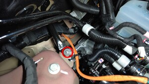 - 拆下车载电脑冷却液软管塞(2 个)。