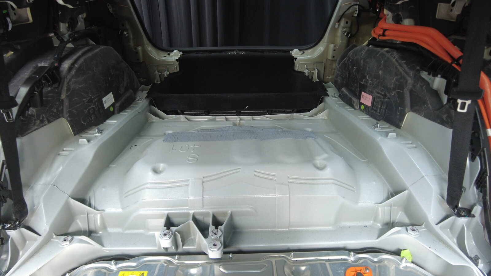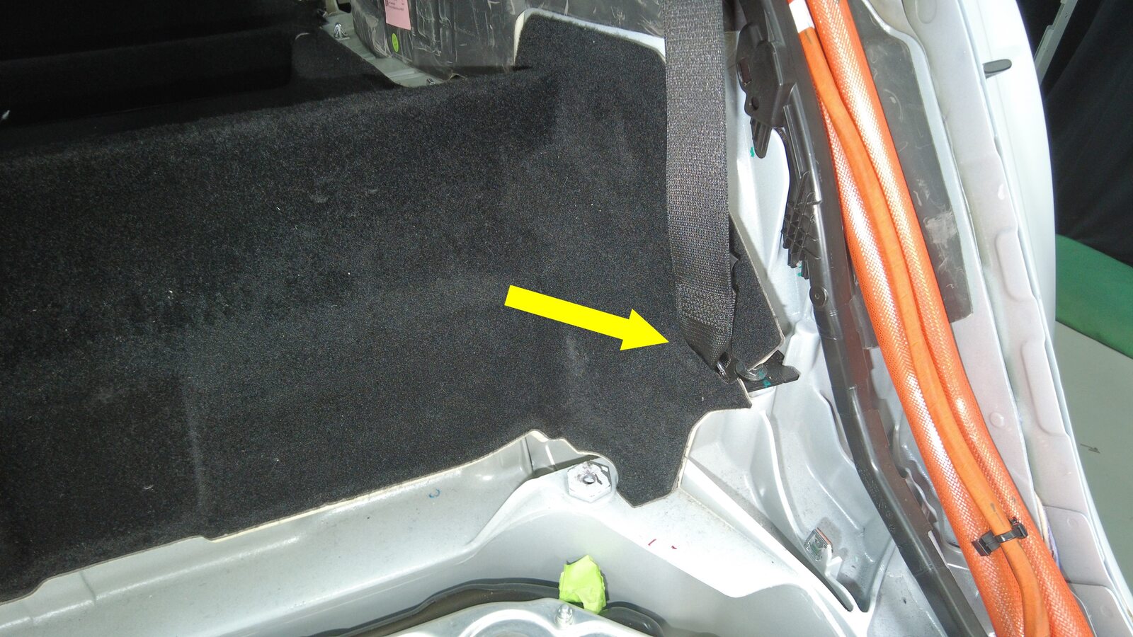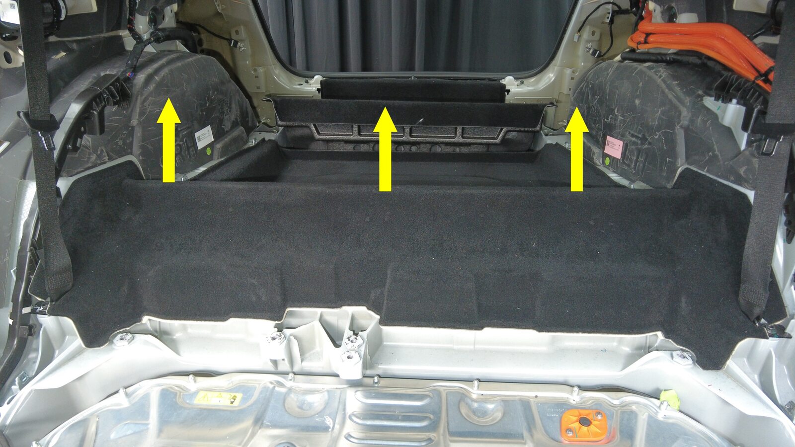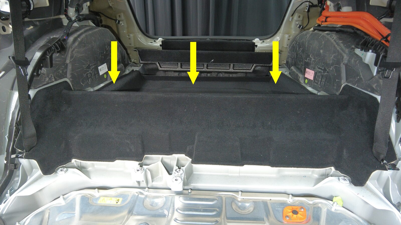 拆下后备箱前部地毯。