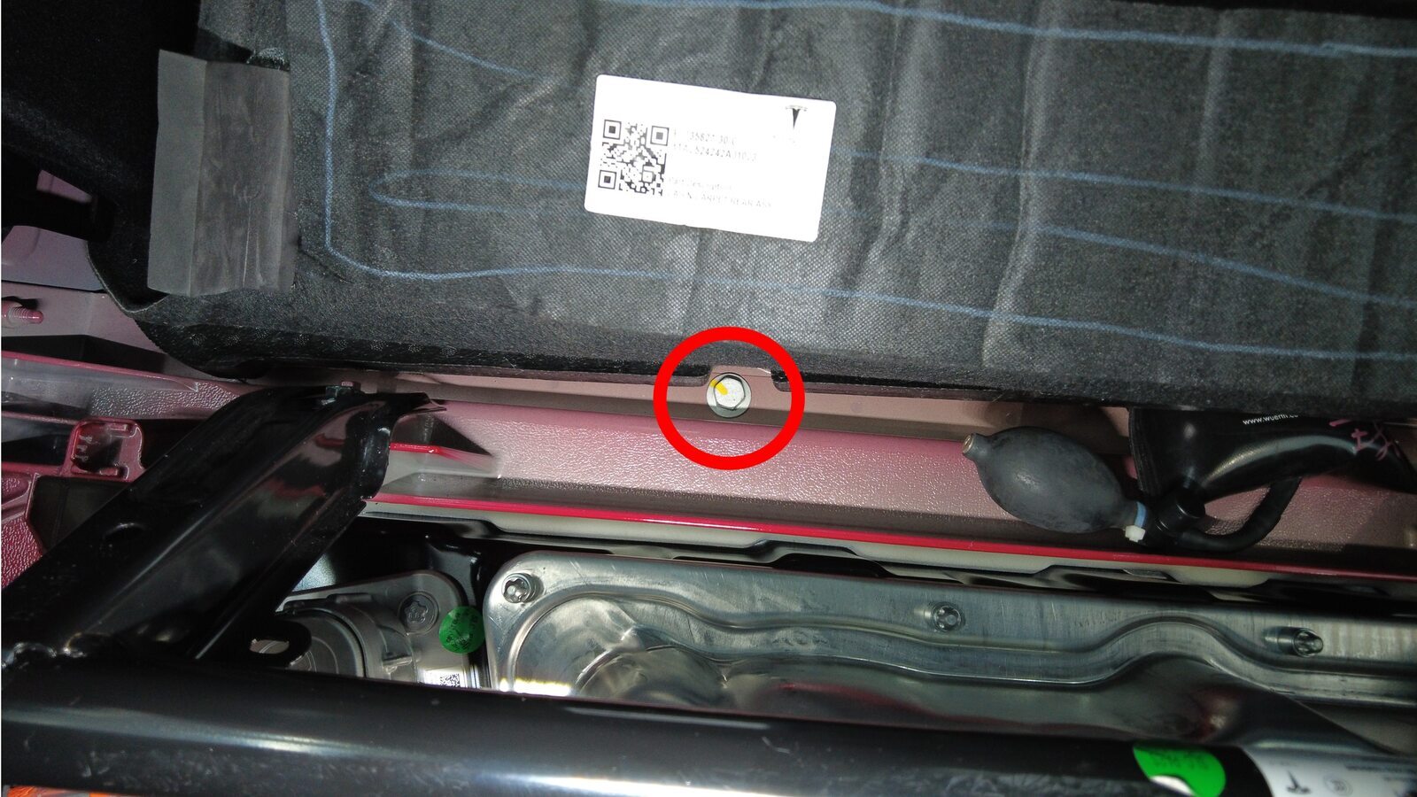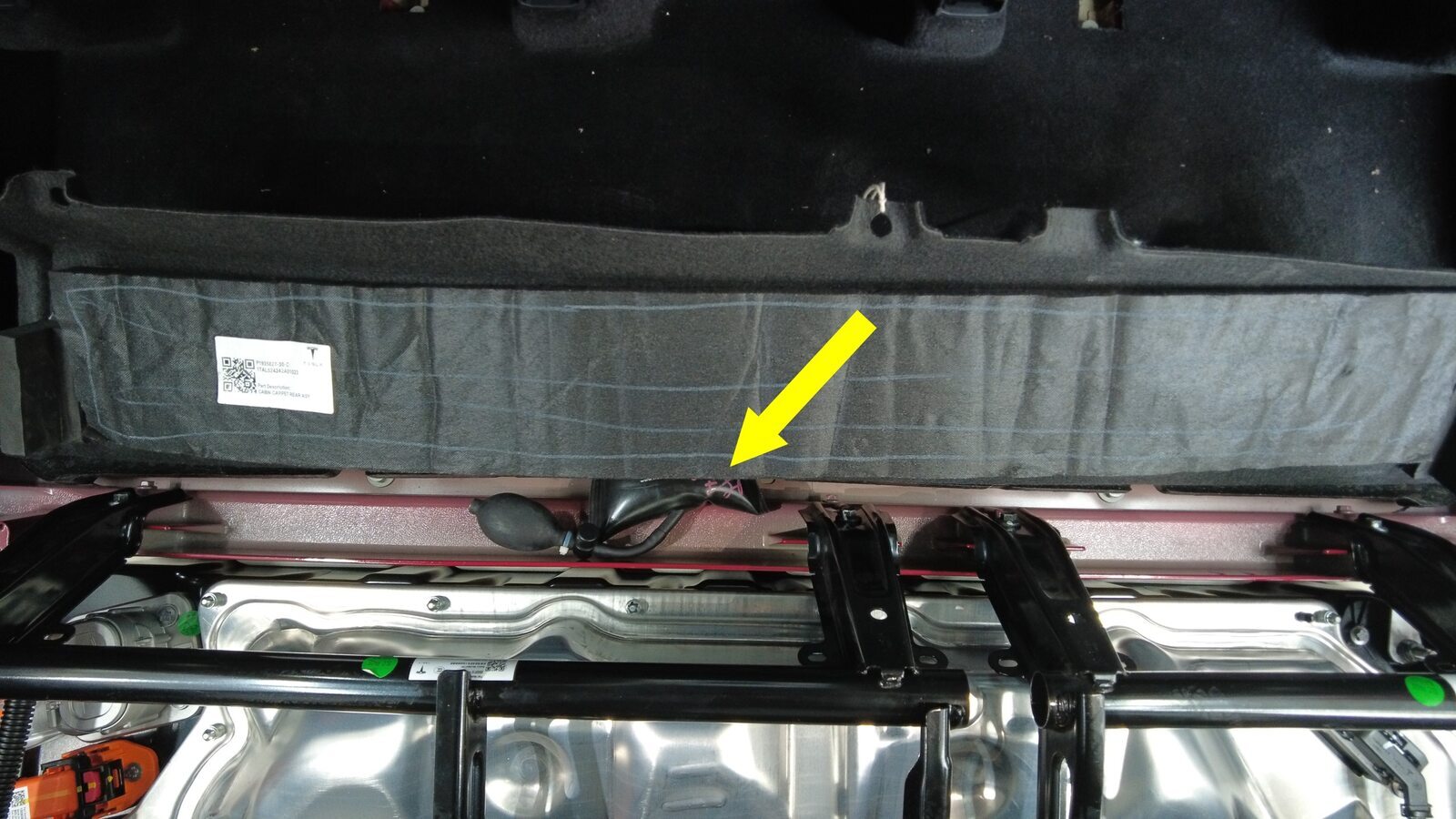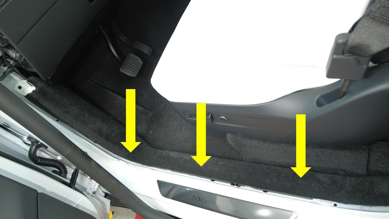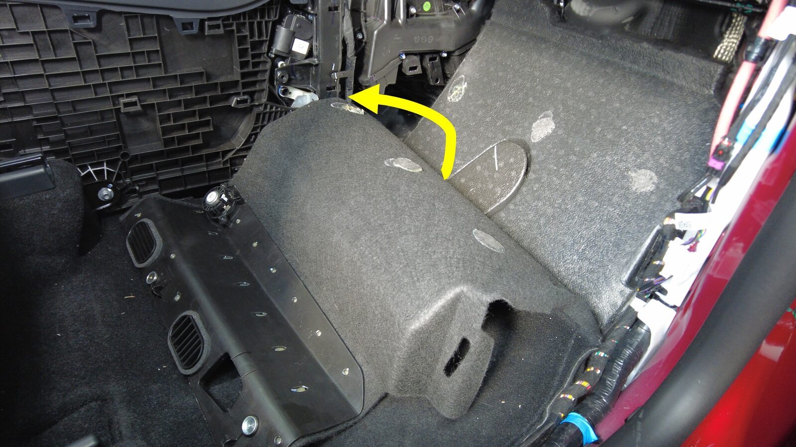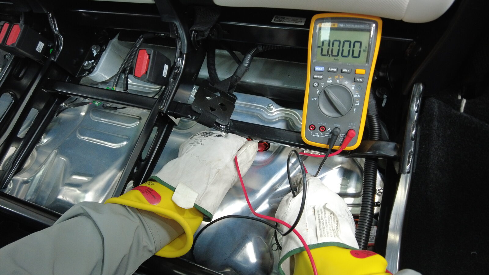 分离右前座椅下方的地毯穿孔,以便接触高压电池内部右侧中间螺栓