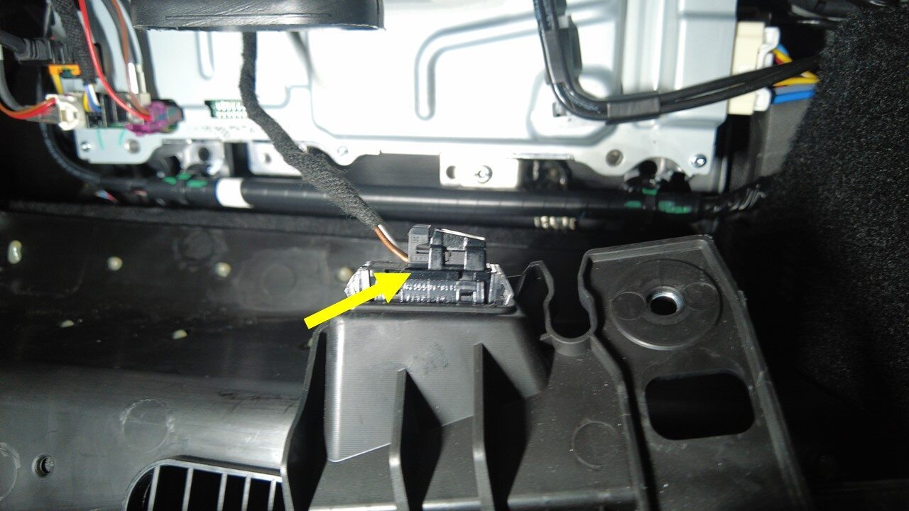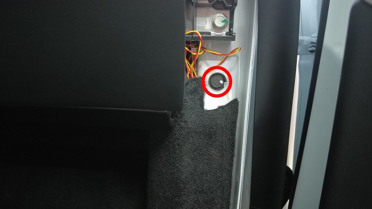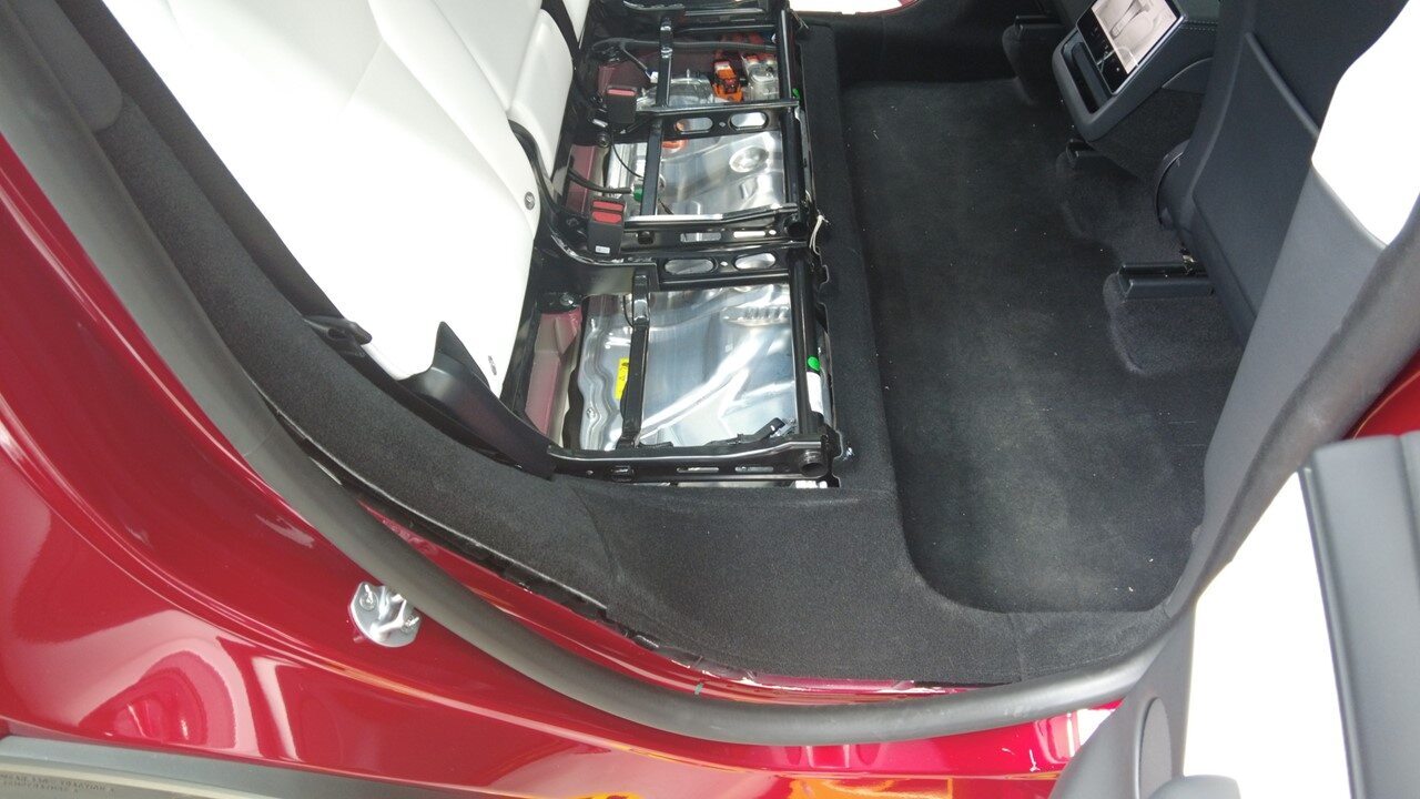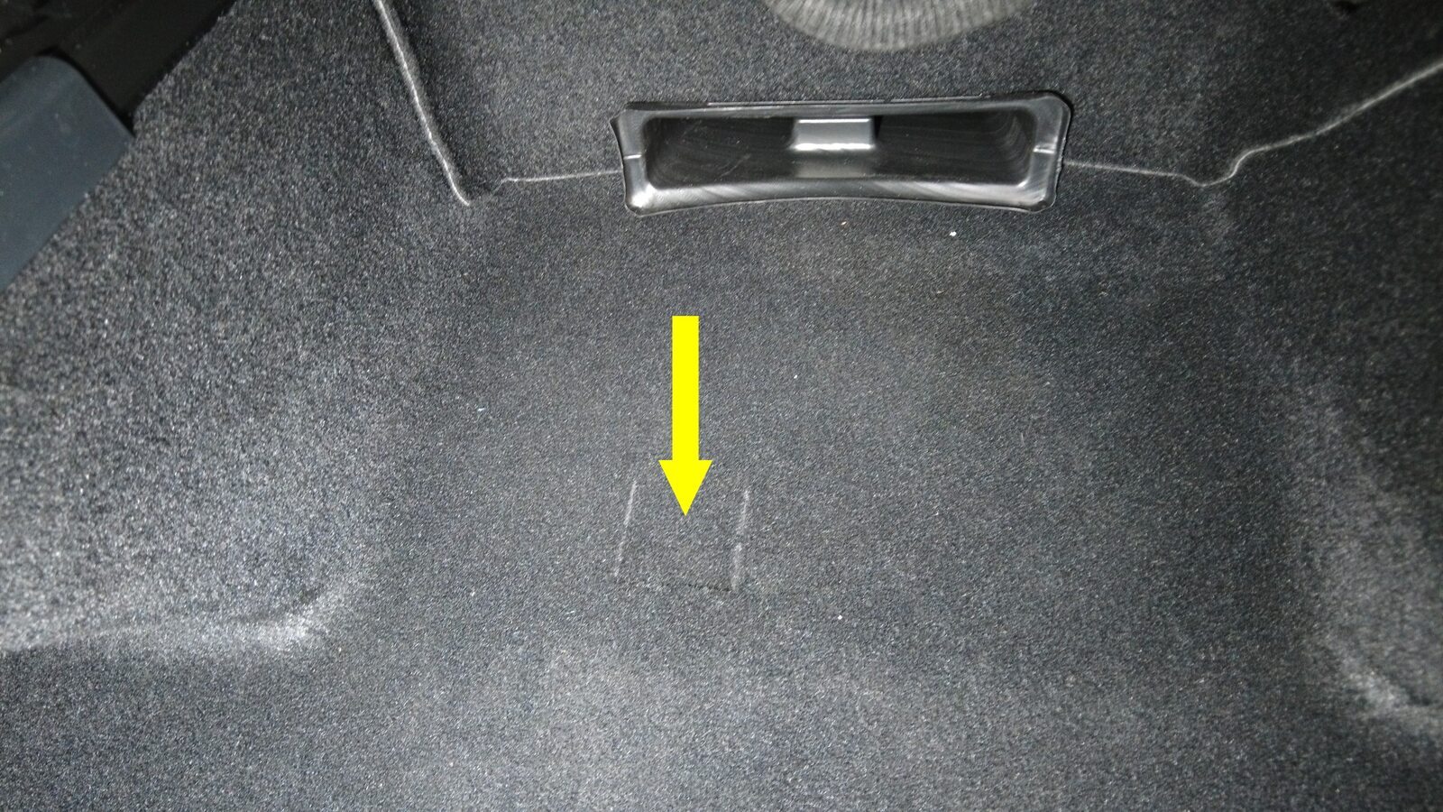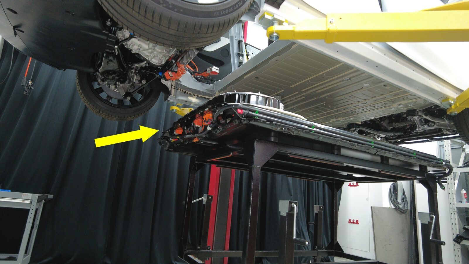 分离右前座椅下方的地毯穿孔,以便接触高压电池内部右侧中间螺栓