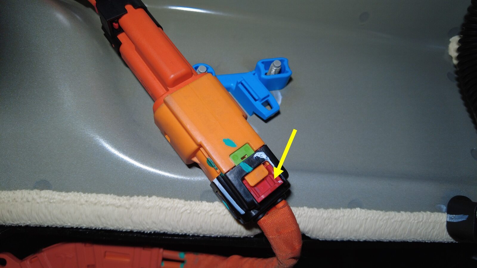注2 个连接器;首先固定紧急响应回路 (FRL),确认低压电池连接就位,将黑色连接器锁向内推动以固定;完全就位后接合绿色锁片