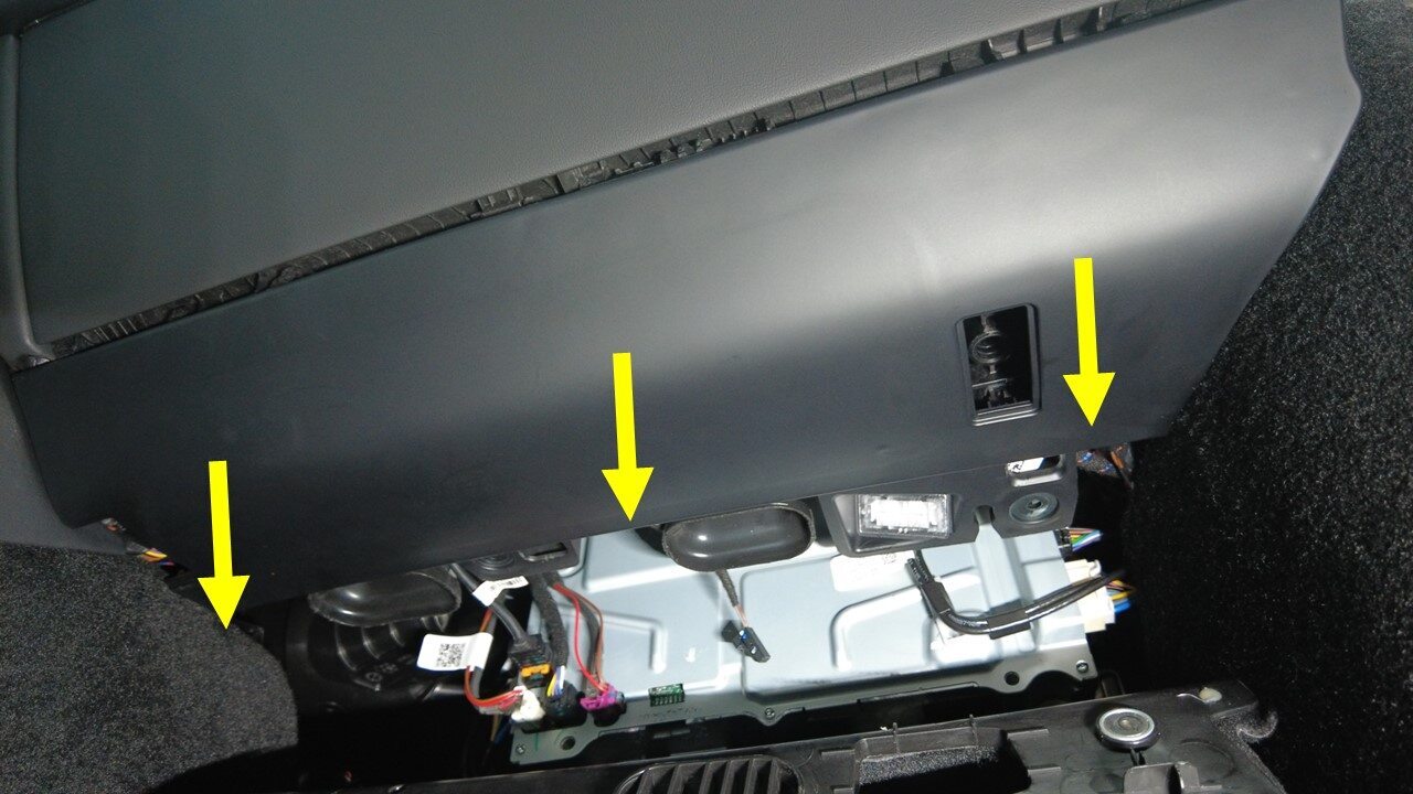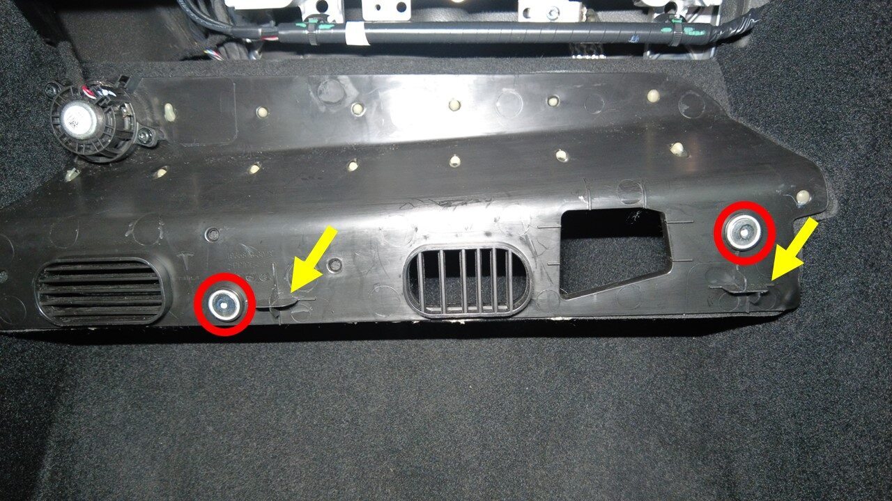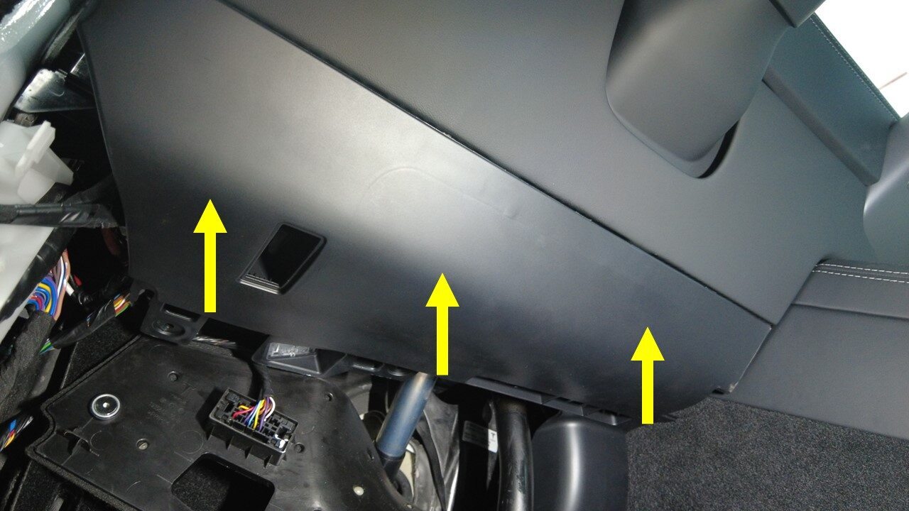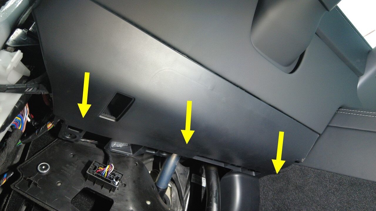 注14 个卡子,2 个定位销;从顶部边缘开始使用饰板工具松开上部卡子;拉动底部以松开剩余卡子;请谨慎操作,将面板径直拉出控制台,面板脱落可能会导致损坏
