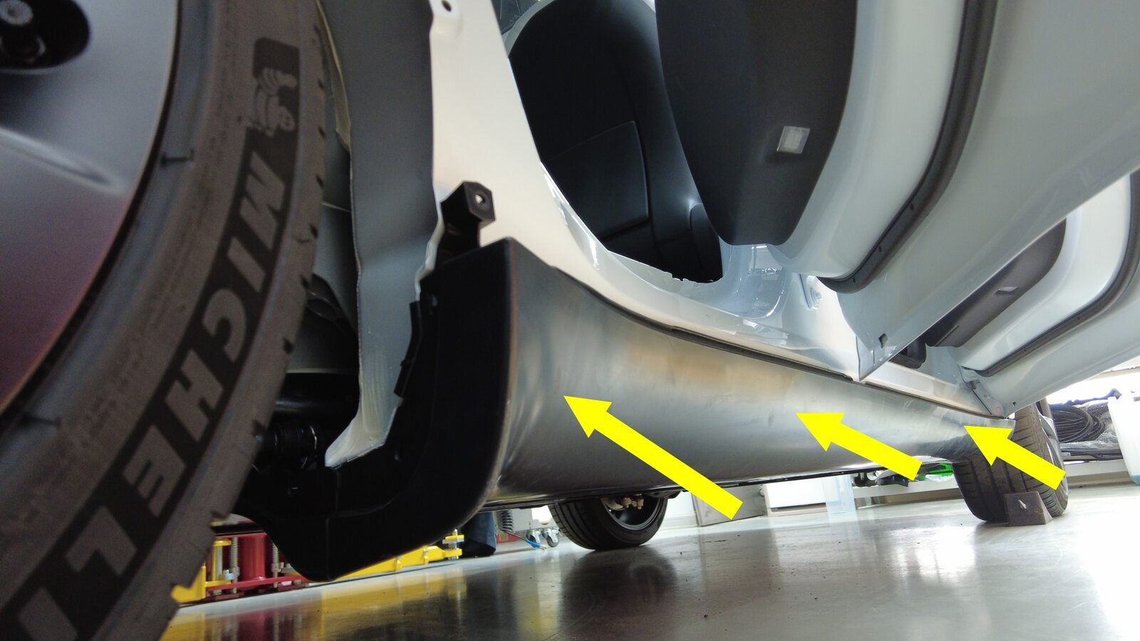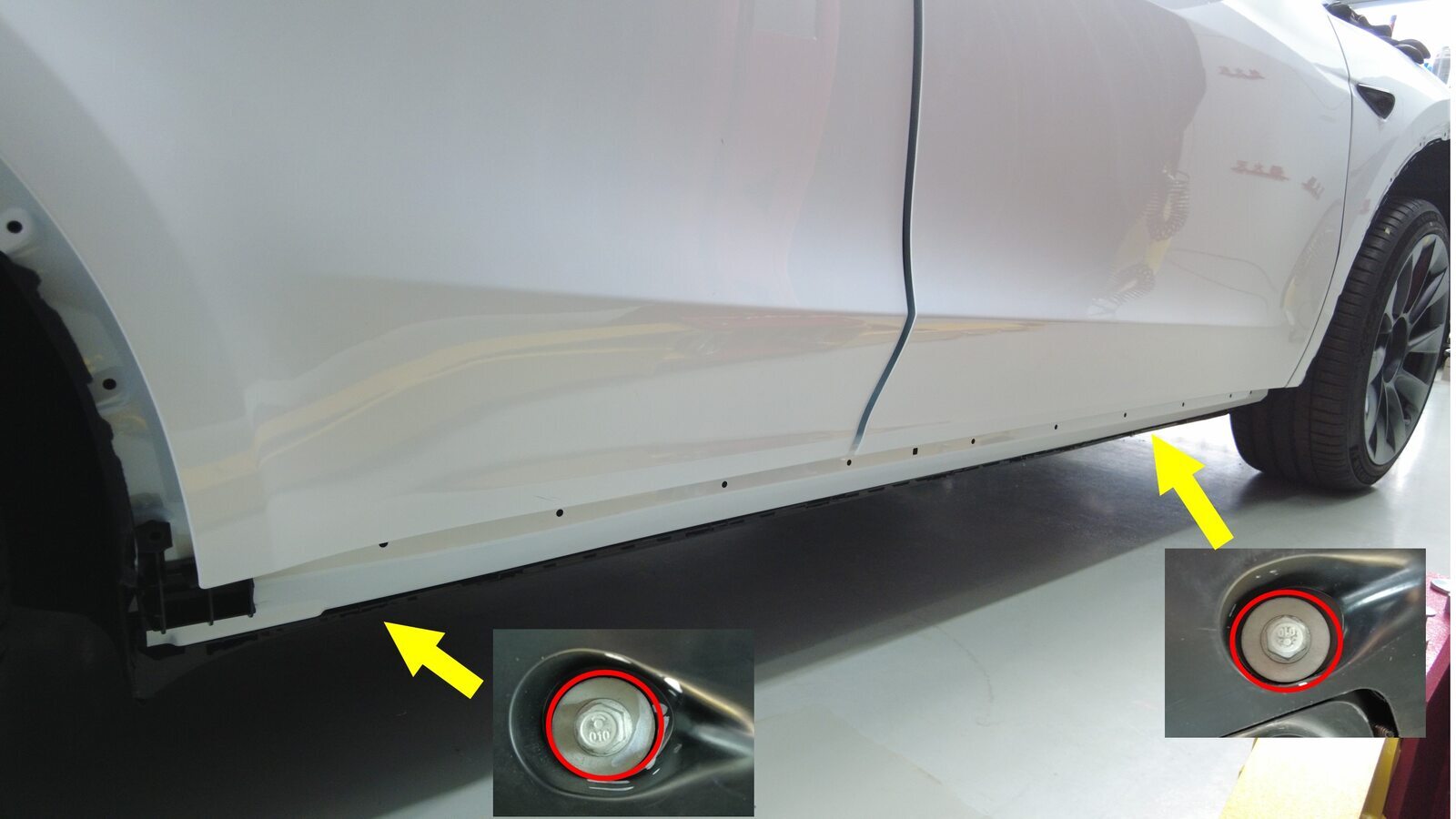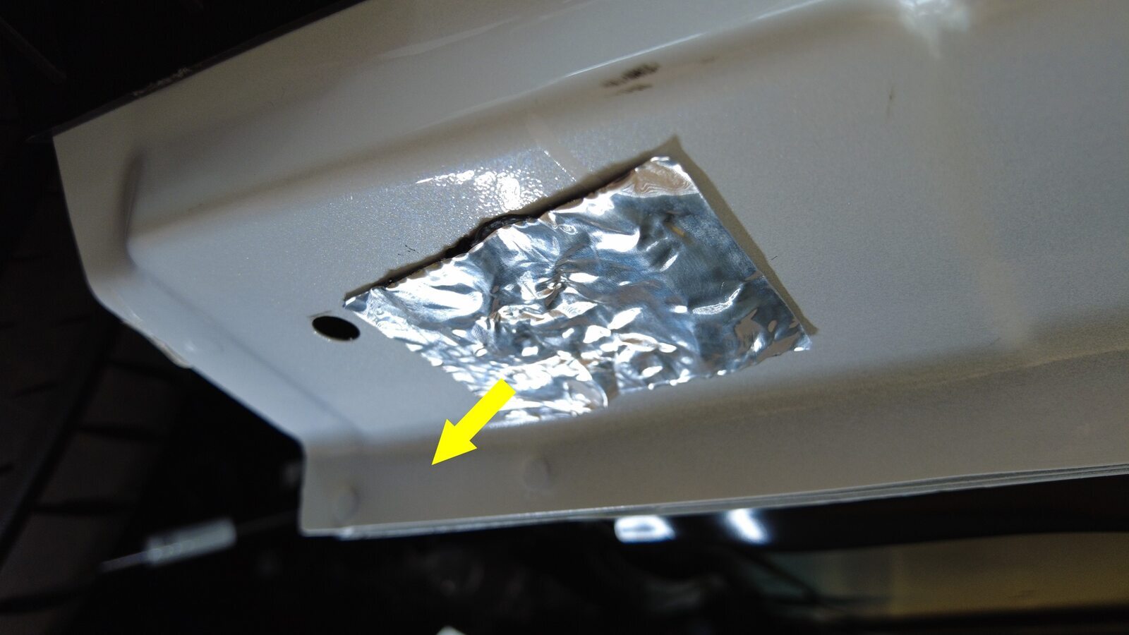取下覆盖左侧门槛检修口的丁基粘贴片。