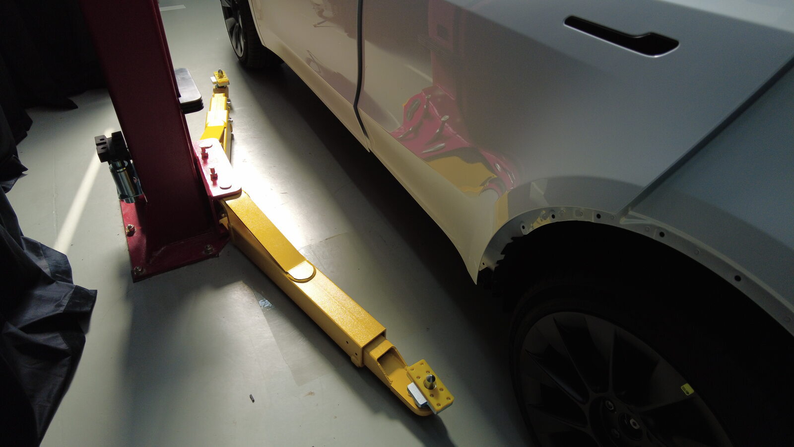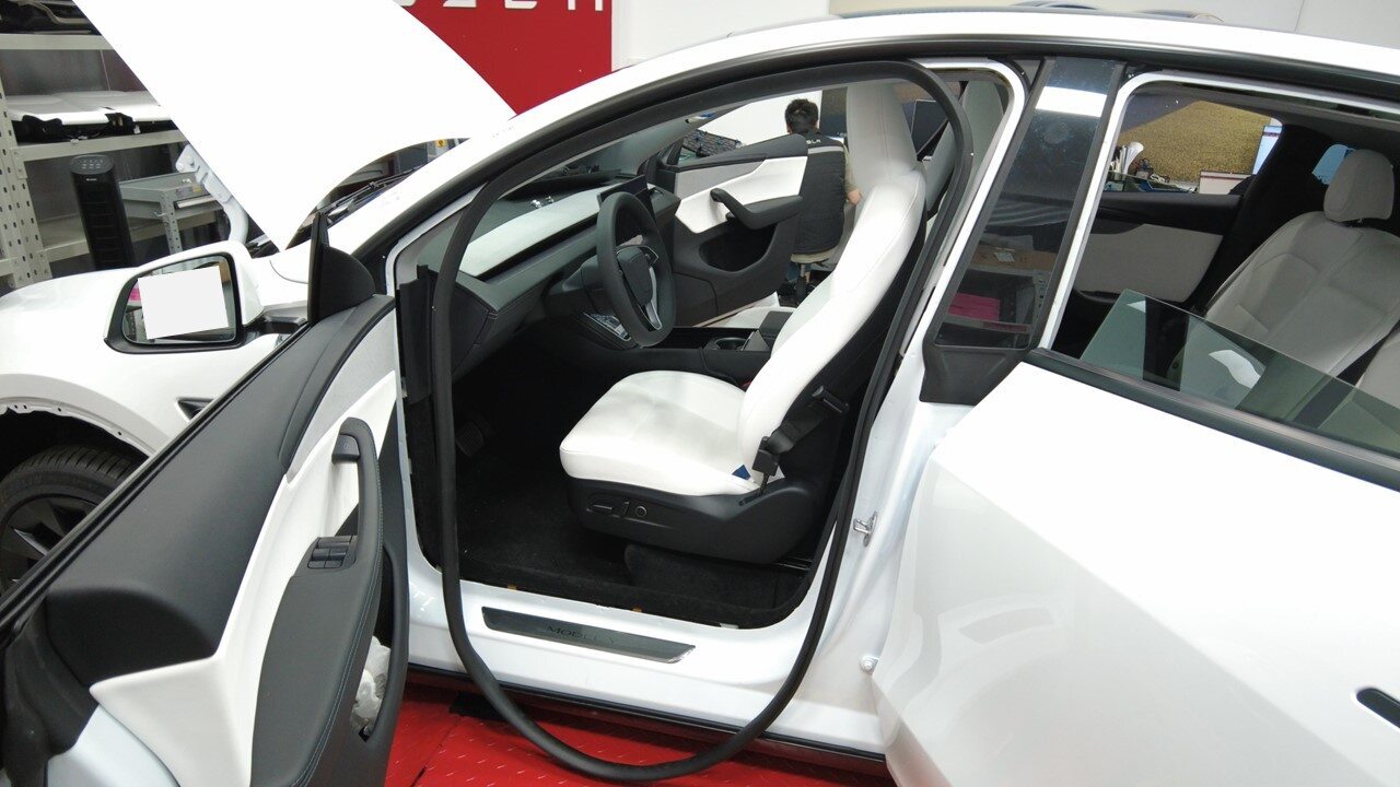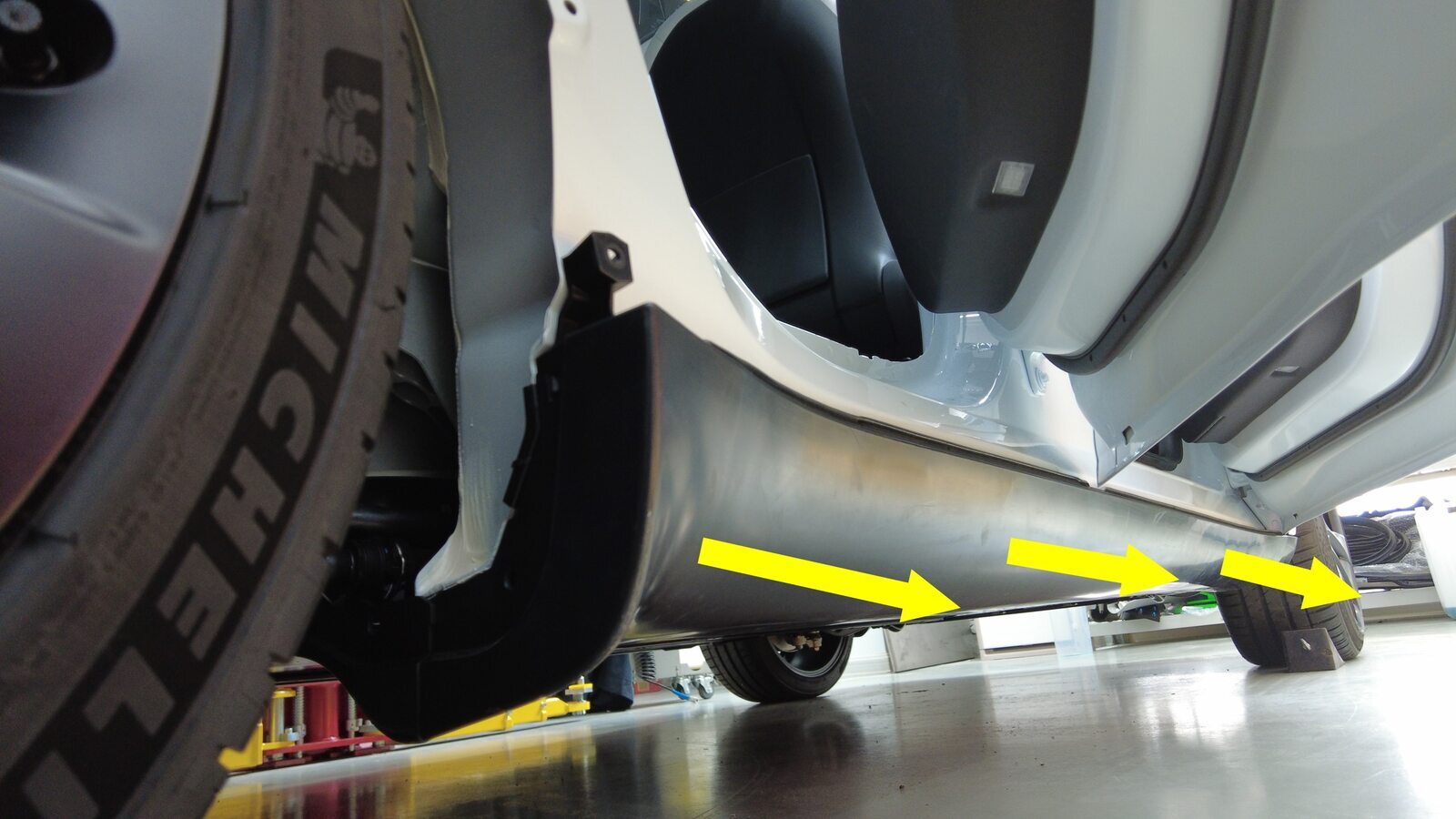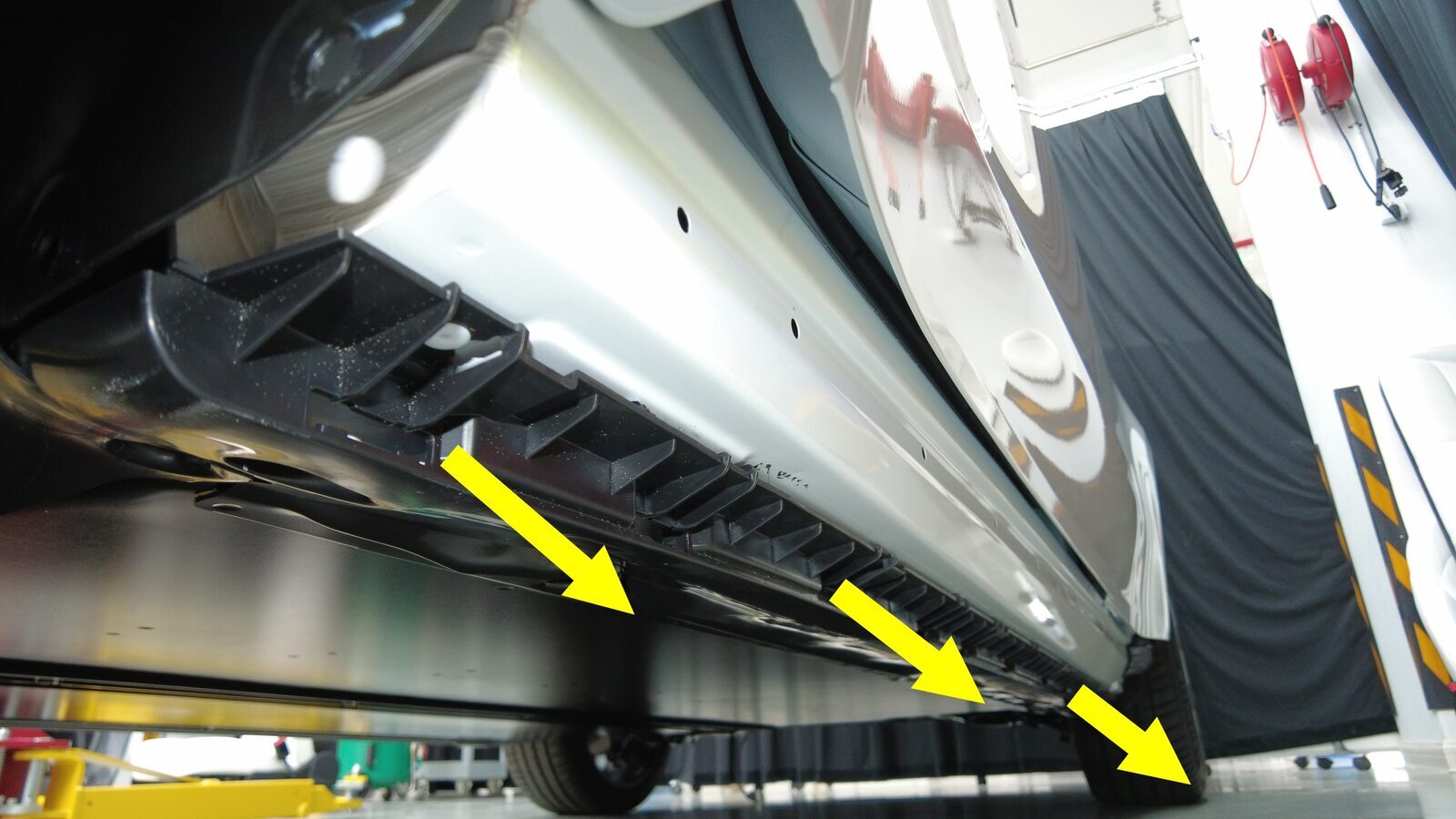 取下覆盖左侧门槛检修口的丁基粘贴片。