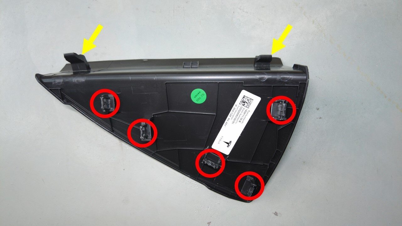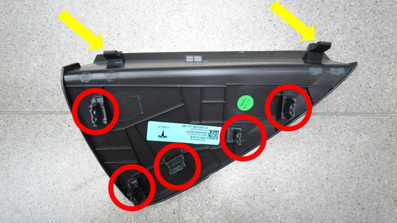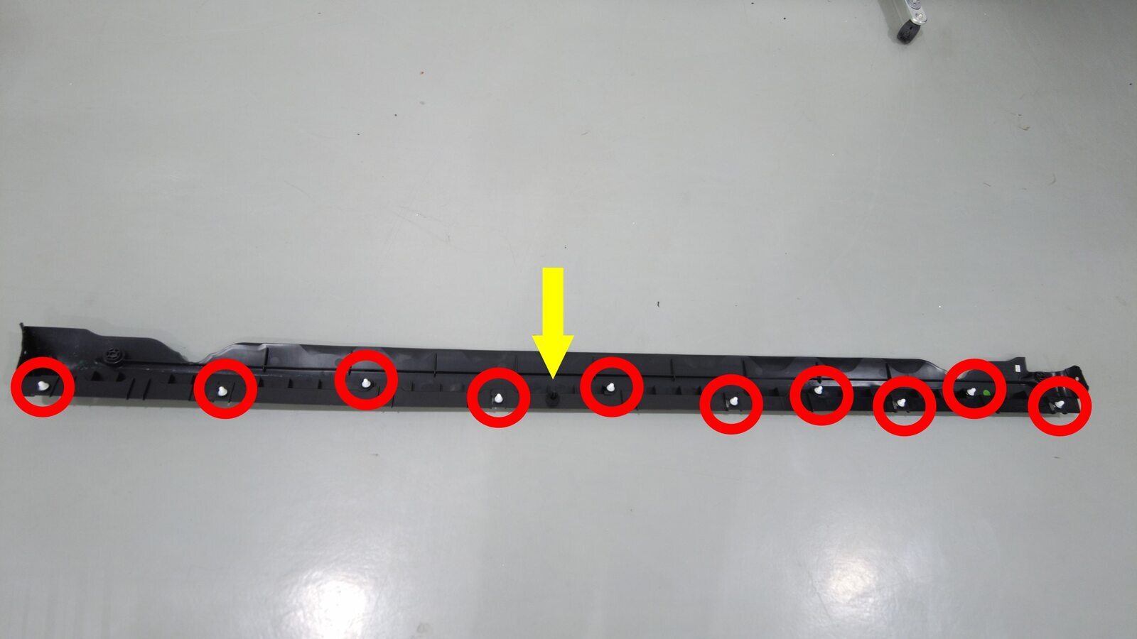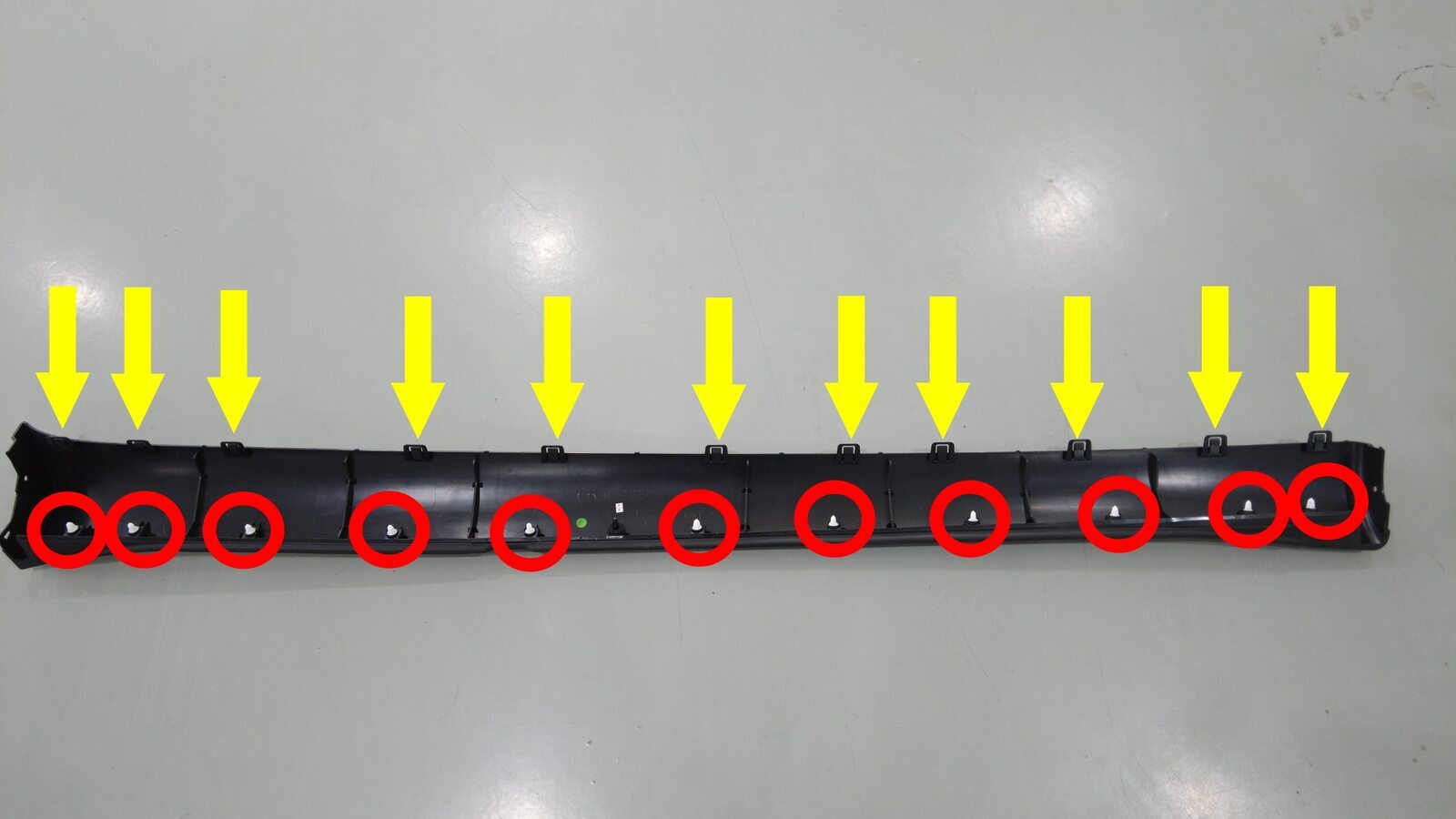 注7 个卡子,2 个导片;向上拉动饰板以松开所有卡子
