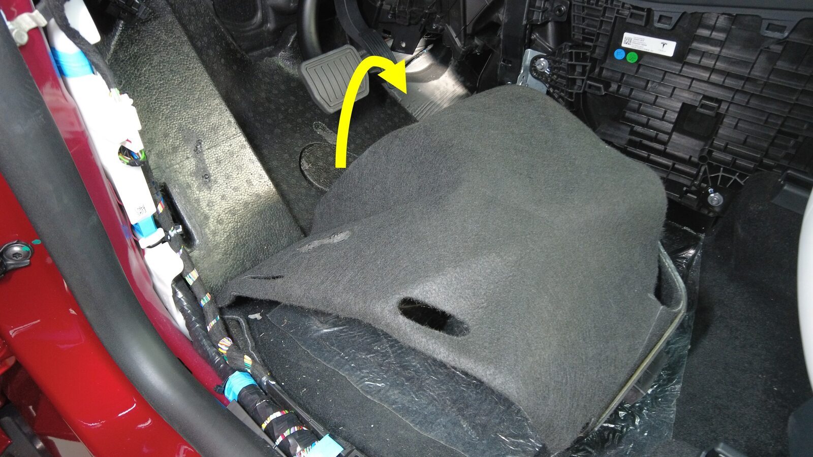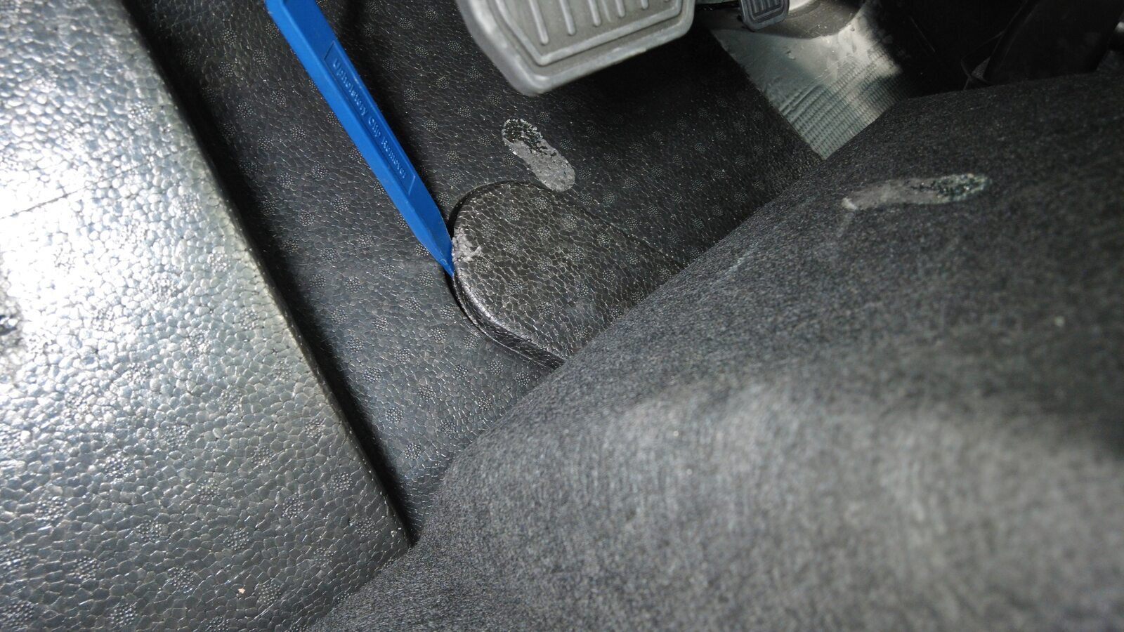 将驾驶室左前地毯罩从驾驶位脚部空间隔音板上松开