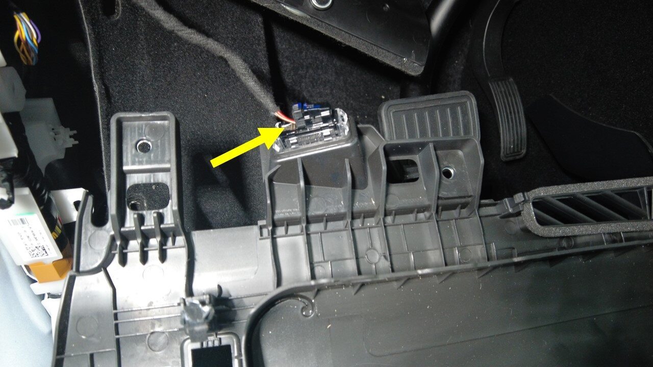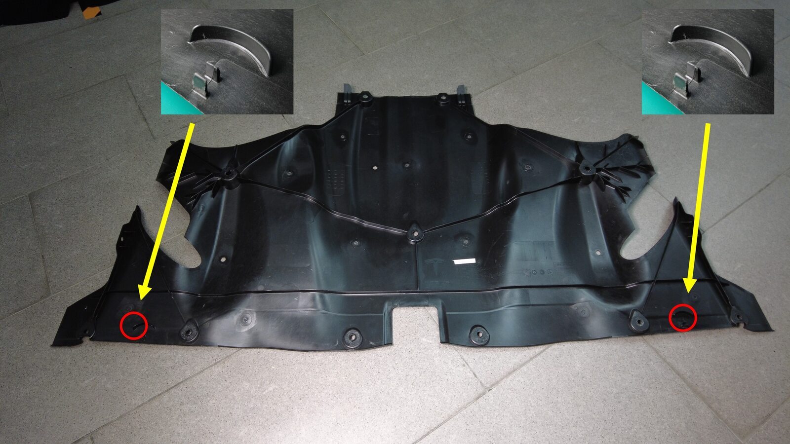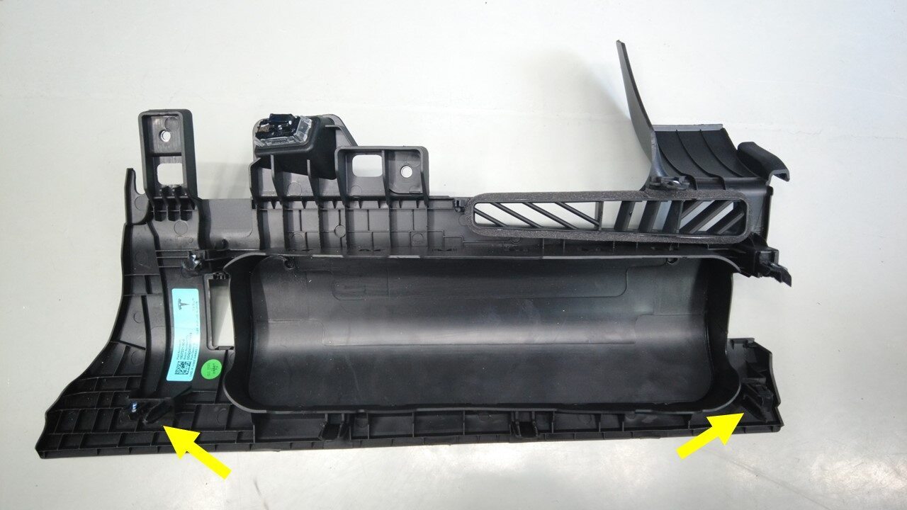 注2 个锁片;按下黑色锁片以解锁,然后向下压出脚部空间盖板