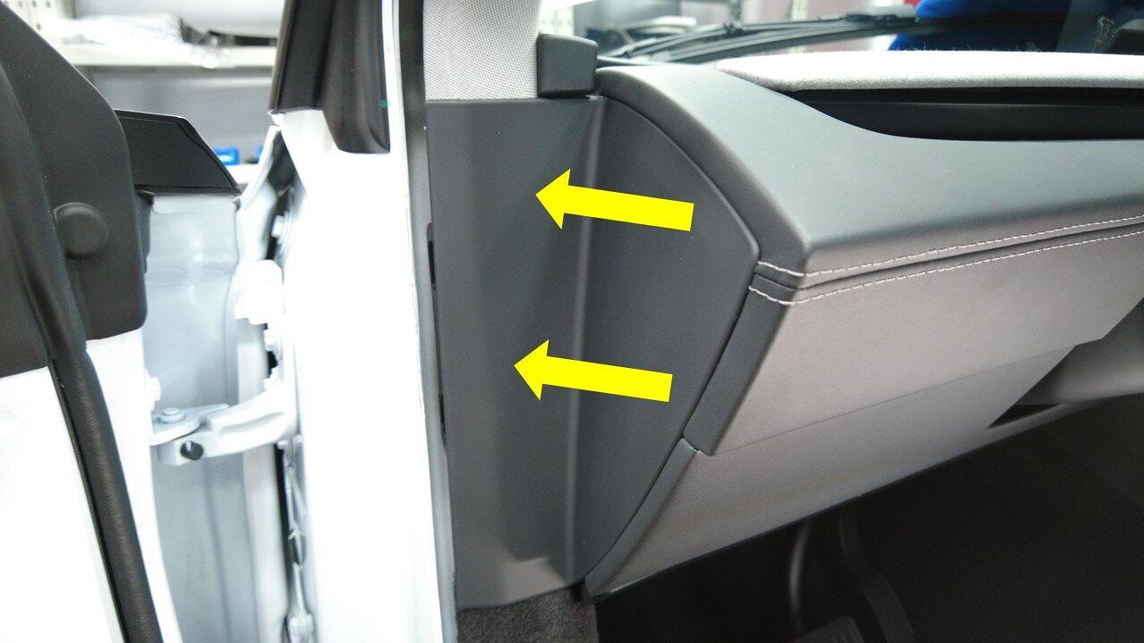 注适用于拆卸右侧仪表板端盖、右侧 A 柱下饰板、右侧 B 柱前饰板