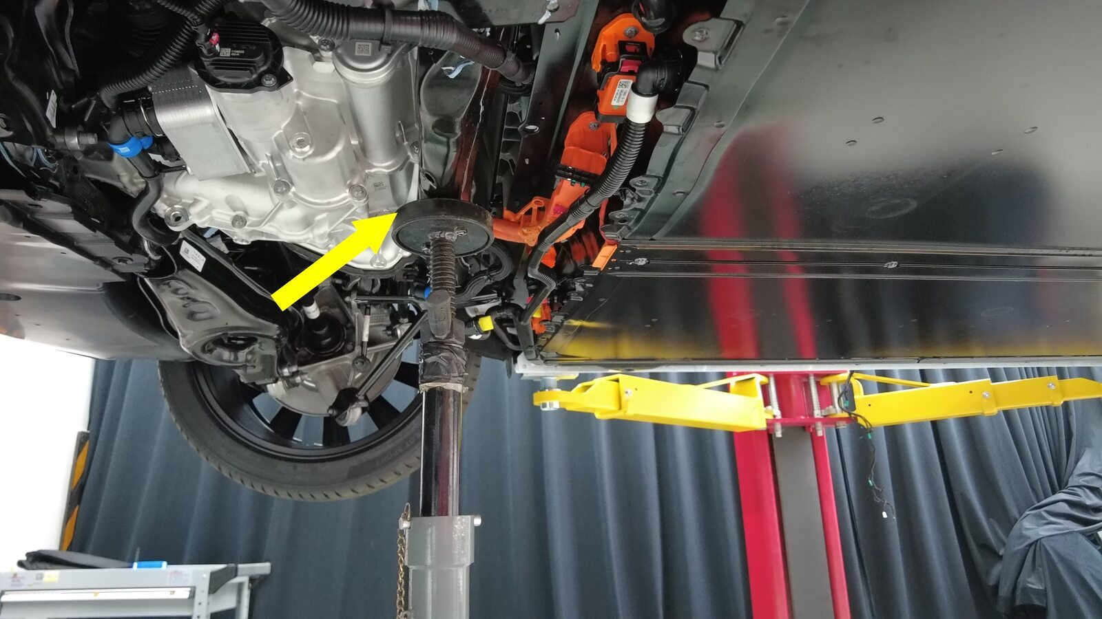 将气囊放置在驾驶室后部地毯下方,以便抬起并接触高压电池内部后侧螺栓