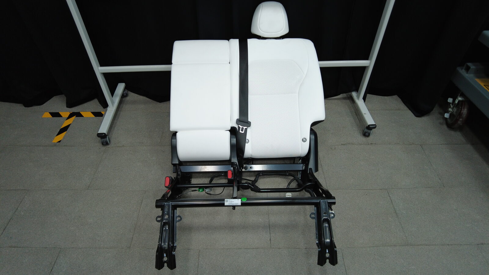 注1 个连接器;向后滑动后部座垫,然后将泡沫与座椅滑轨对齐;进行推拉测试以确保座垫完全就位,然后确保锁扣固定在第二排座垫下方