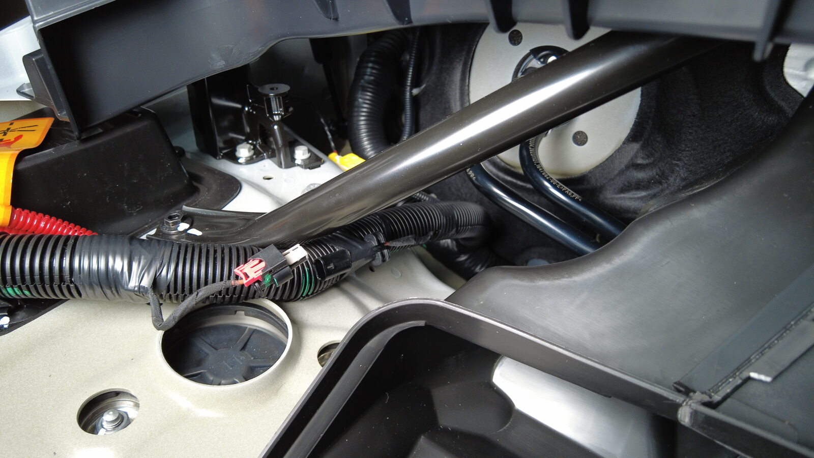 注2 个螺栓,10 毫米, 10 Nm;向下旋转前边缘并经过前备箱总成,然后小心移动后边缘,使其经过制动储液罐后就位;轻轻按压过滤器右侧以使密封件紧固在风管上。