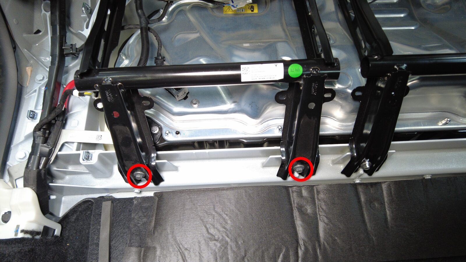 注4 个螺栓,11 毫米,37 Nm;座椅底部螺栓位于主地毯后部;拆卸后弃用