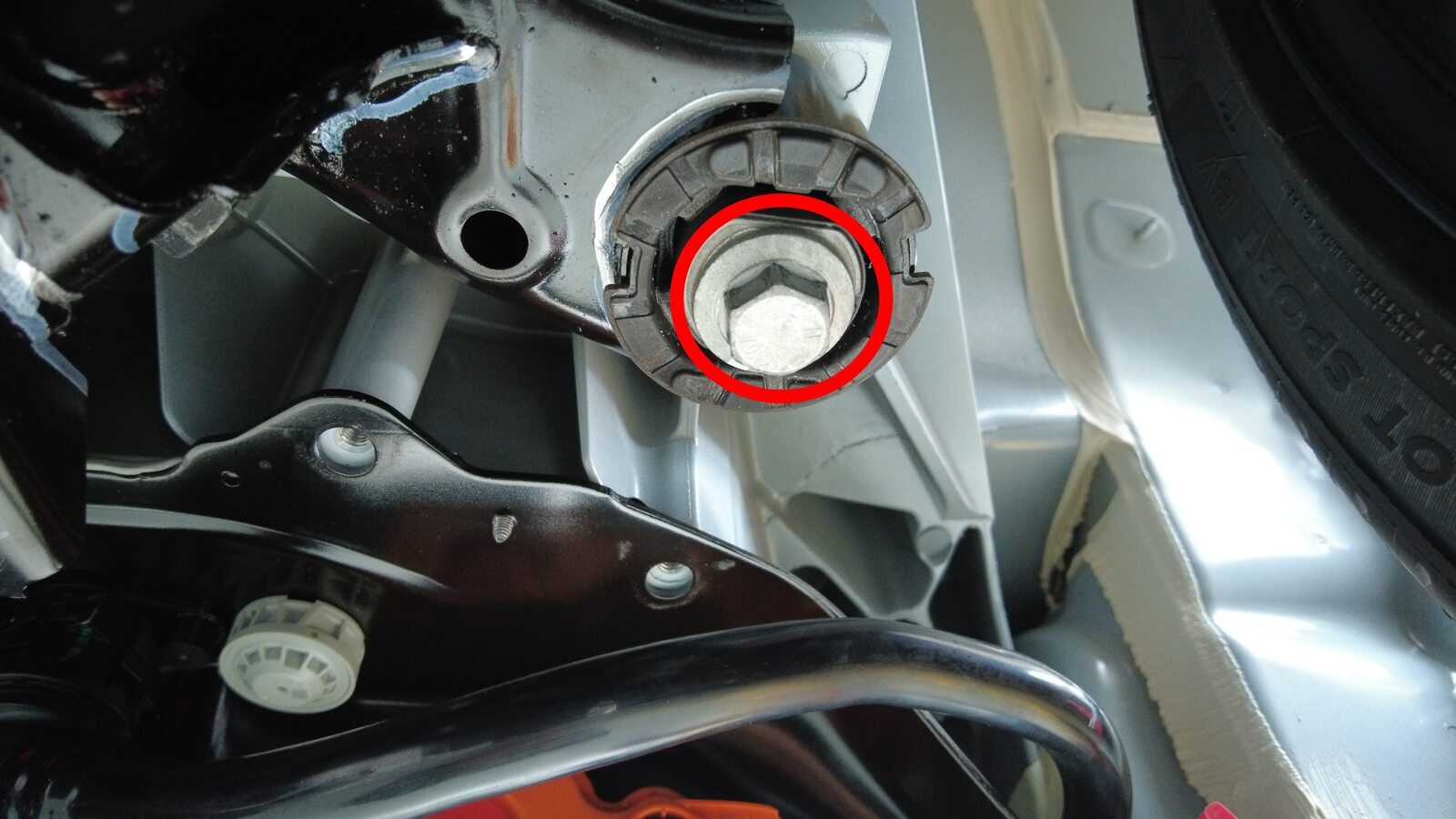 注1 个螺栓,16 毫米,66 Nm;位于左后主地毯下方