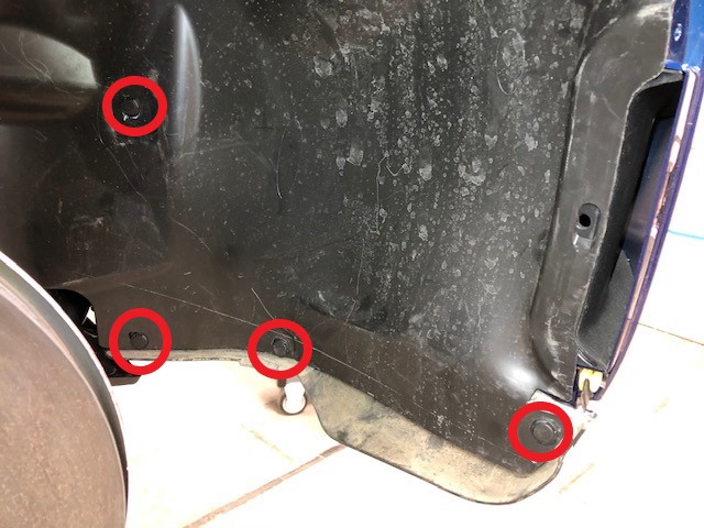 松开将 RH 前轮拱内衬的前部固定到车辆的夹子 (x8)。