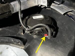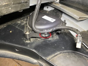 检查车辆右前角下方,找到行人警示扬声器电气连接器分支线束。