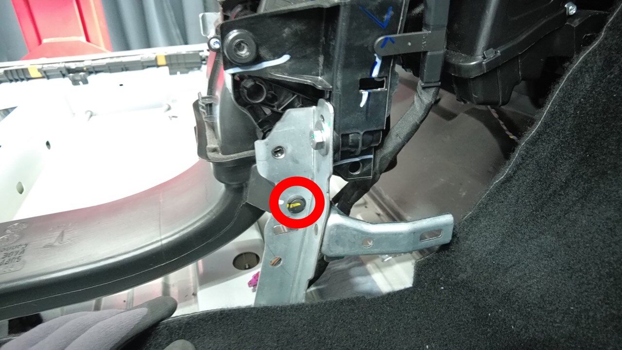 拆下将仪表板右侧立板支架固定到中控台风管的卡子。
