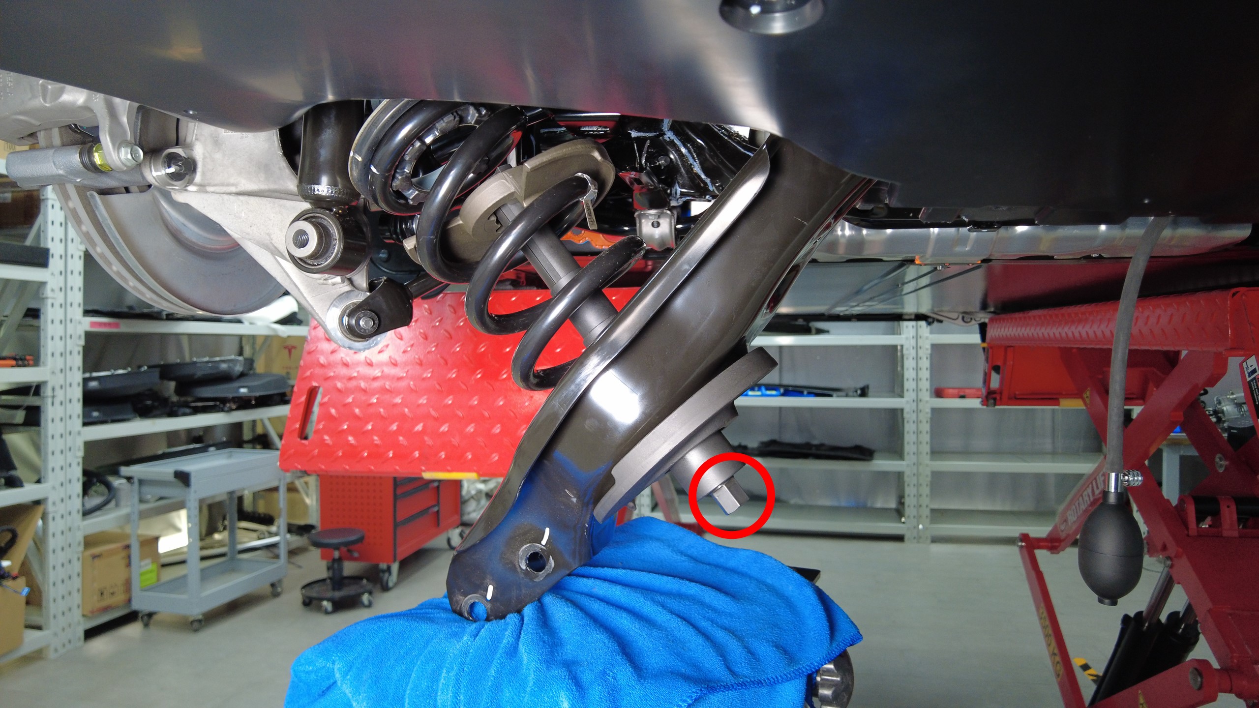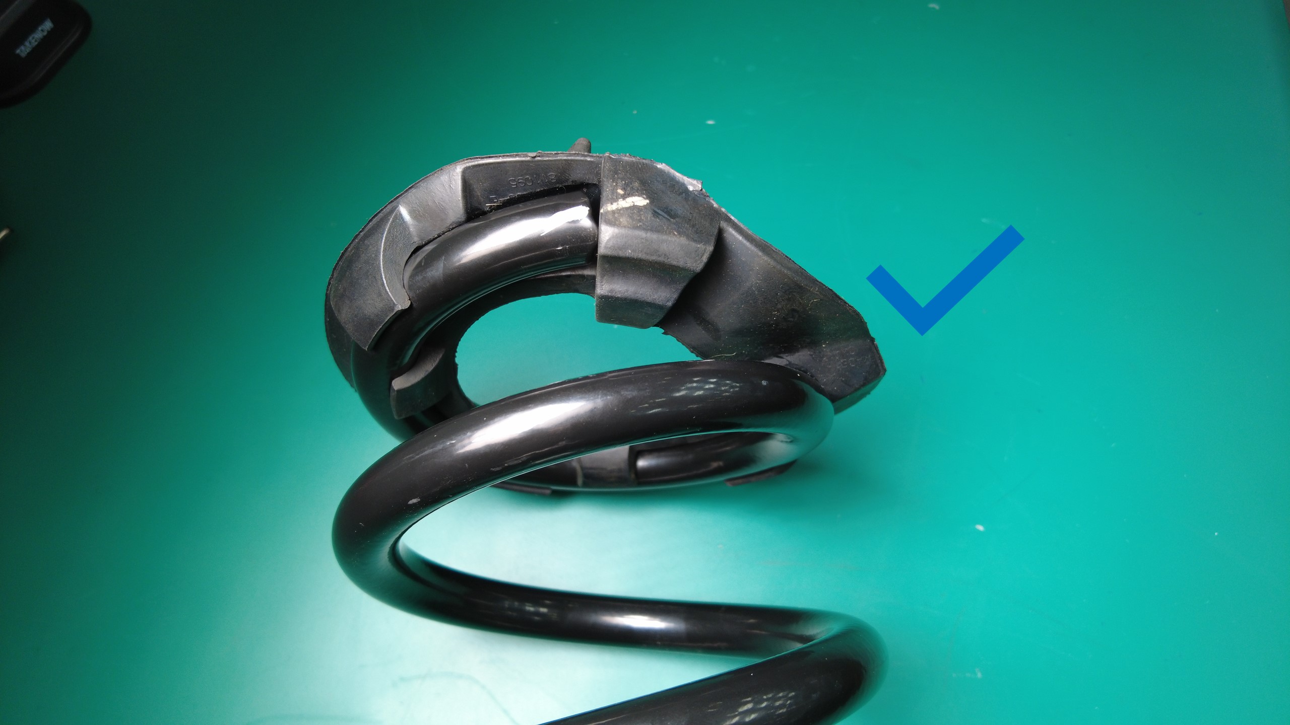 注如果需要,在左侧下方控制臂与弹簧之间连接一根弹力绳,以便拆卸。
