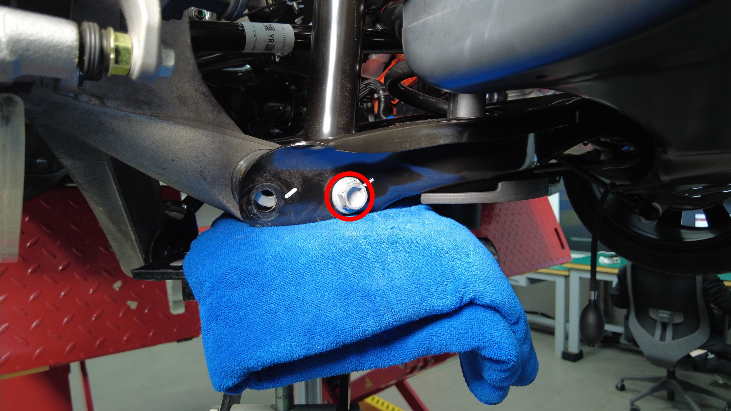 | 将左侧减震器固定到左后下尾连杆的螺栓 |