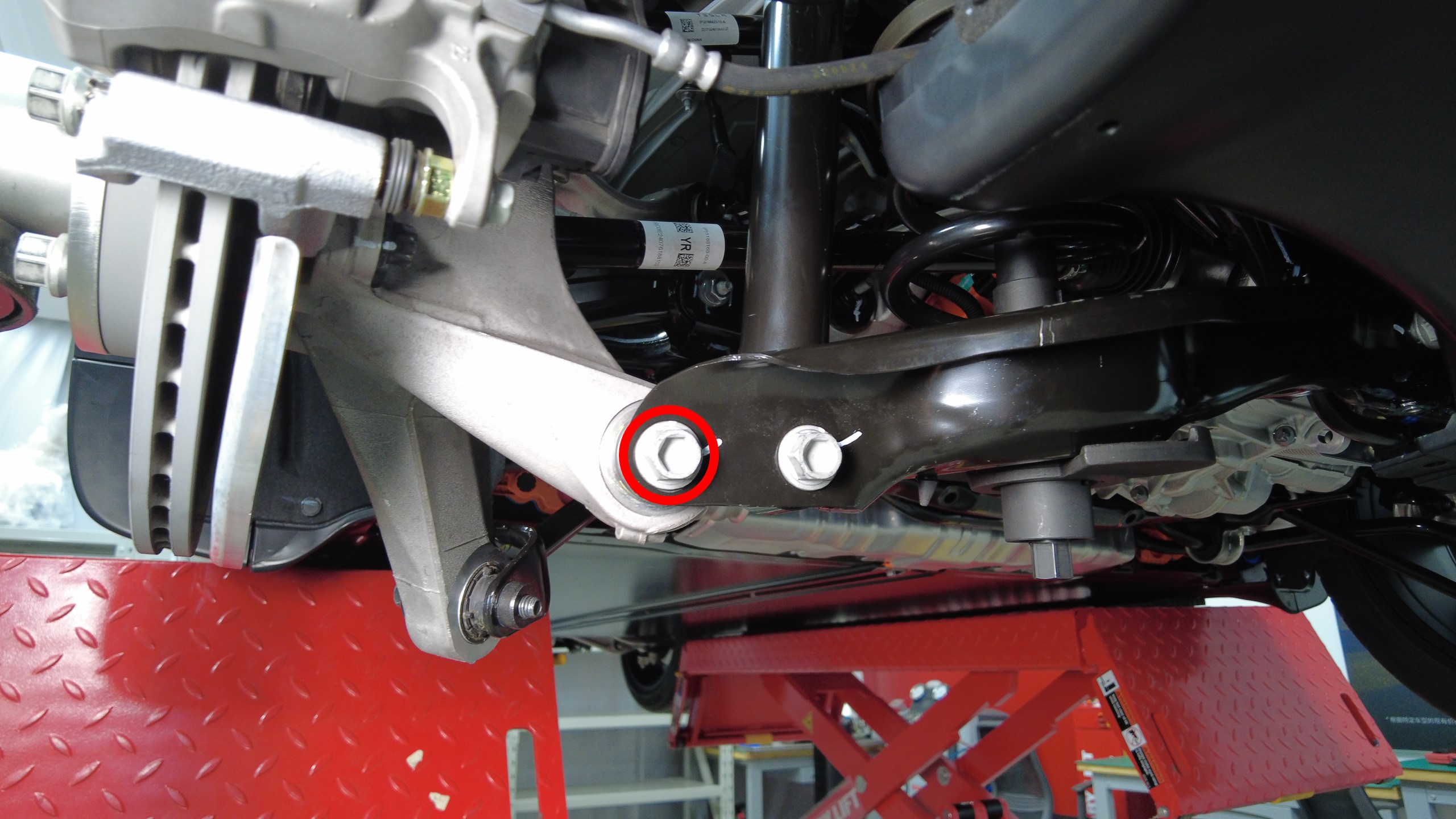 紧固将左后下尾连杆固定到副车架的螺栓。