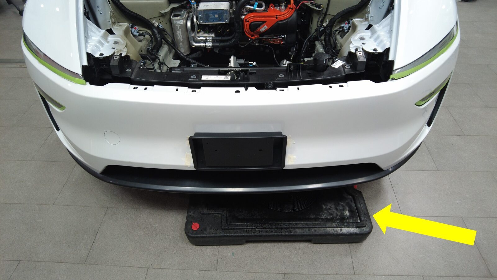 - Remove the front aero shield panel. See 流线型护板 - 前 ((拆卸和更换)).