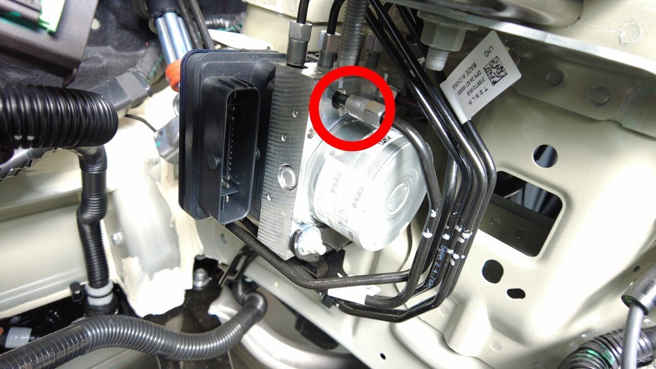 Release the clip that attaches the master cylinder brake lines to the rear of the HCU bracket.
