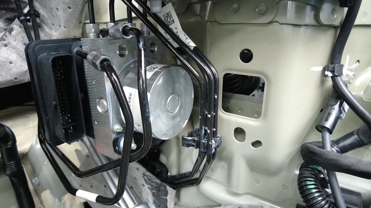 Install the master cylinder brake lines to the rear of the HCU bracket to the body.