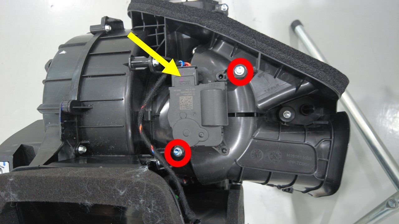 拆下将进气传动装置固定到 HVAC 总成的螺钉(2 个),然后断开连接器。