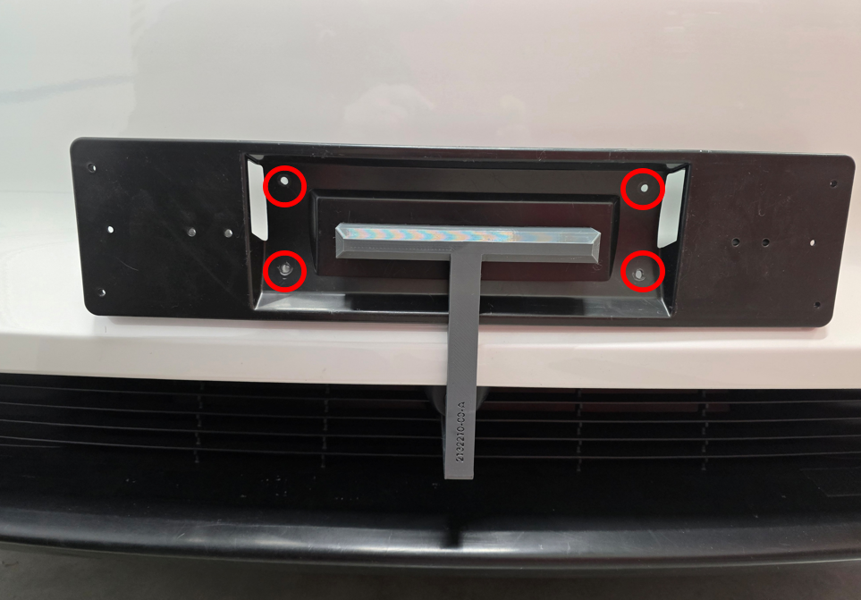 安装将前车牌支架固定到前饰板的螺钉(4 个),然后拆下车牌支架工具。