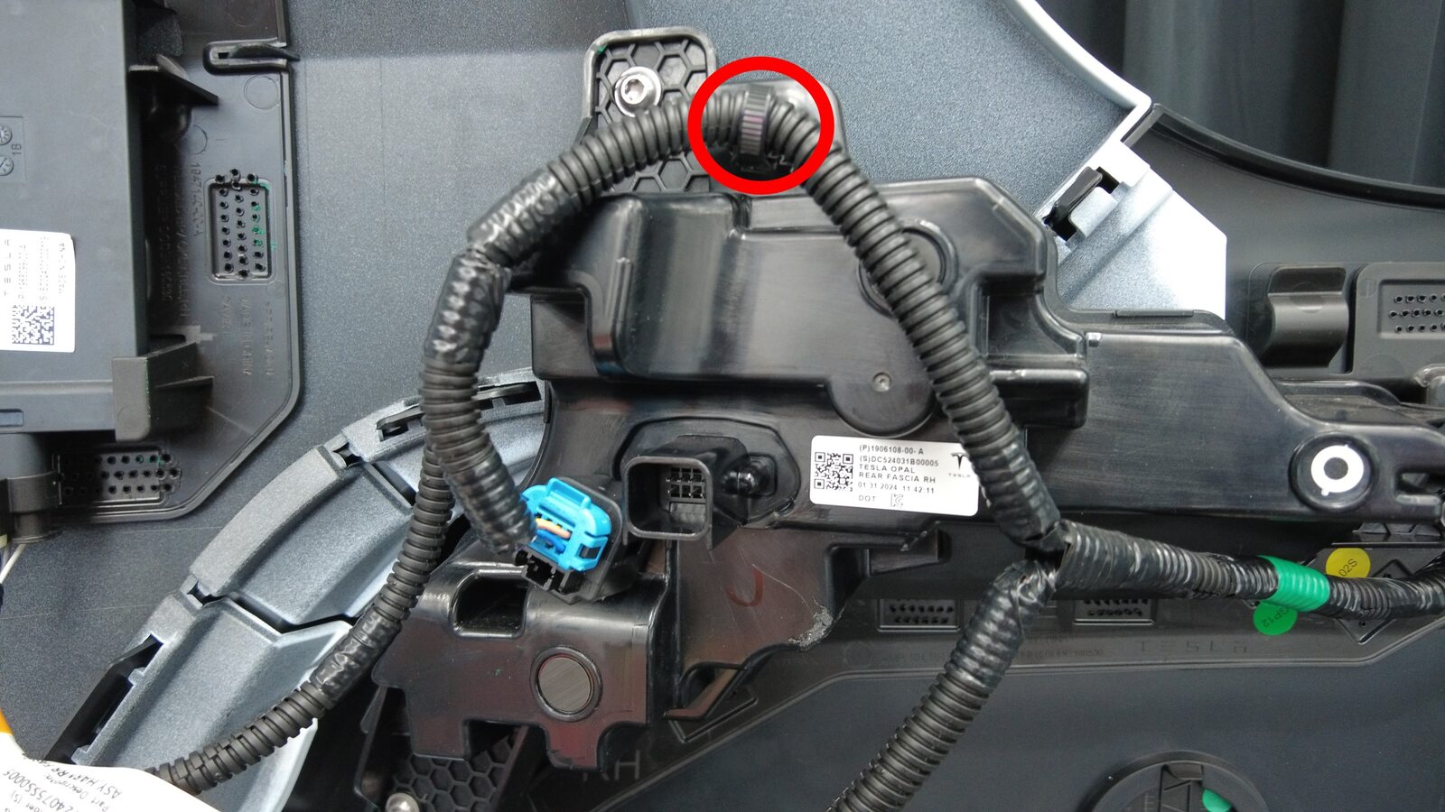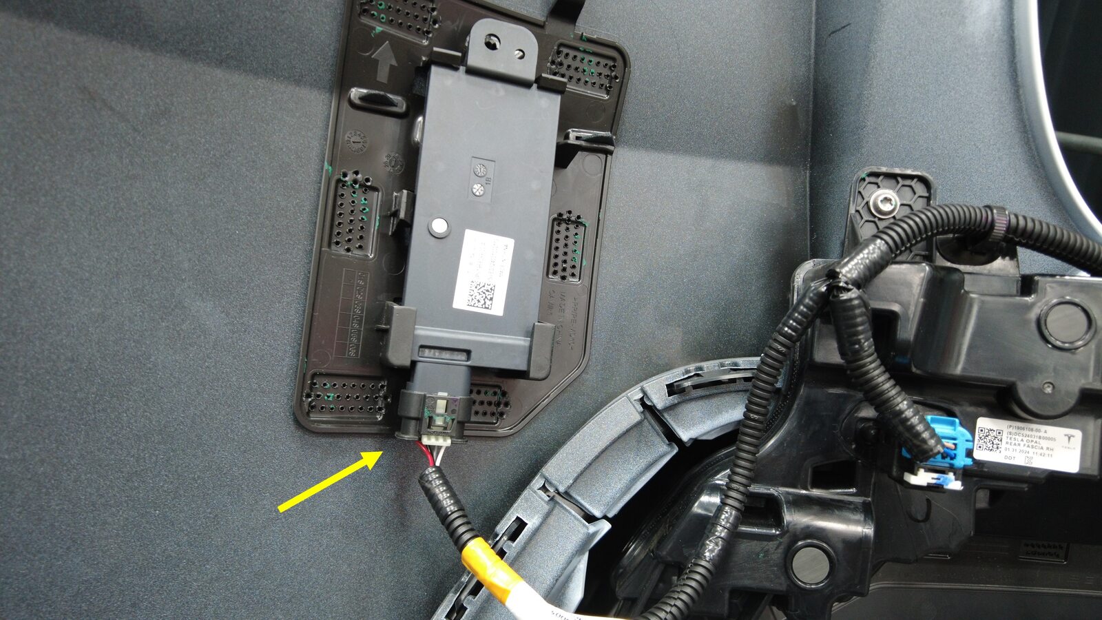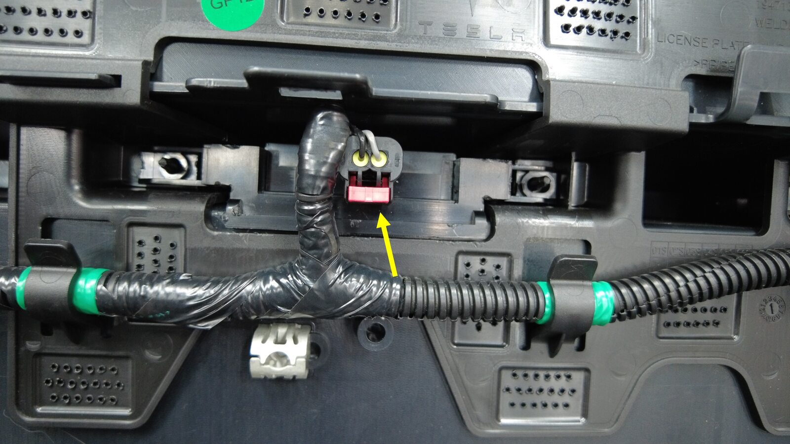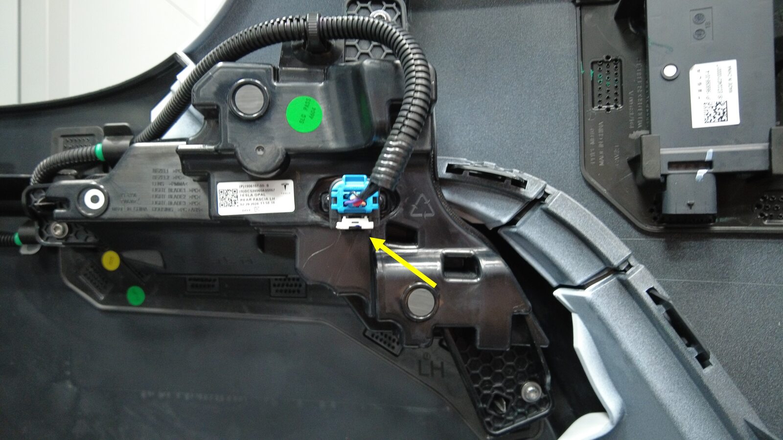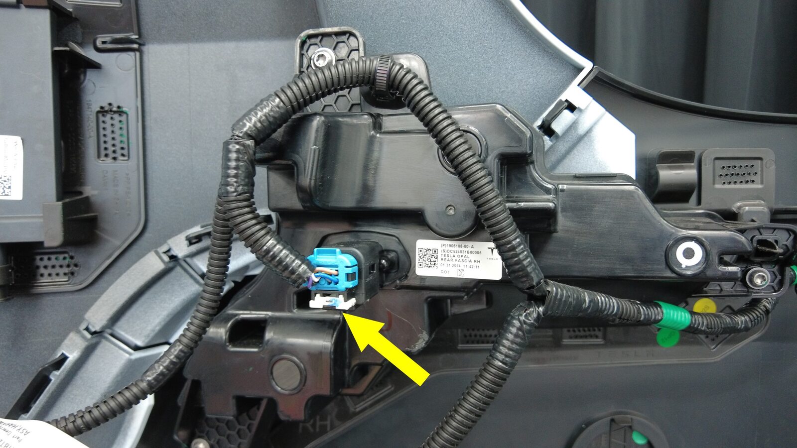 分别连接左右后饰板灯上的电气连接器。