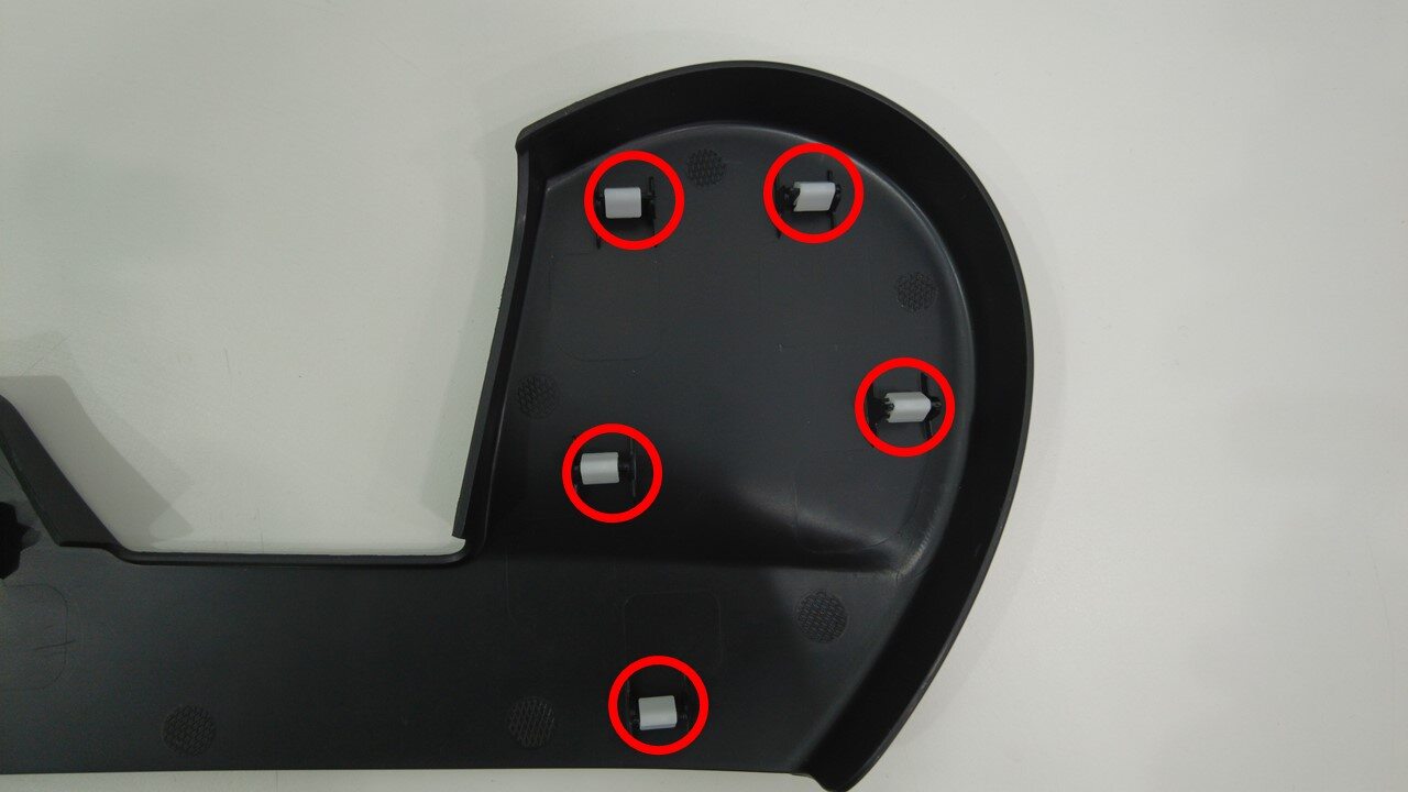 轻轻按压内侧护板后部,将卡子(5 个)安装到位。