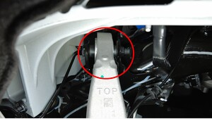 检查将左后减震器固定到下尾连杆的螺栓,确认其扭矩,然后用油性记号笔标记螺栓。