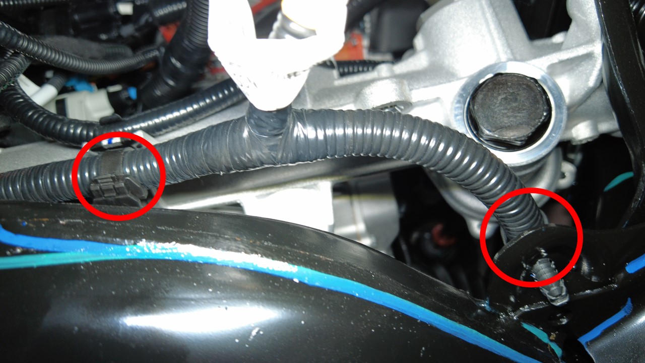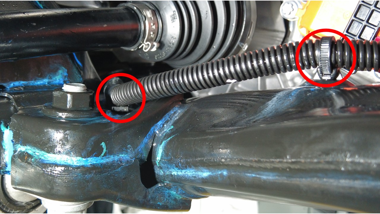 将前驱动单元线束夹紧固到前副车架右侧。