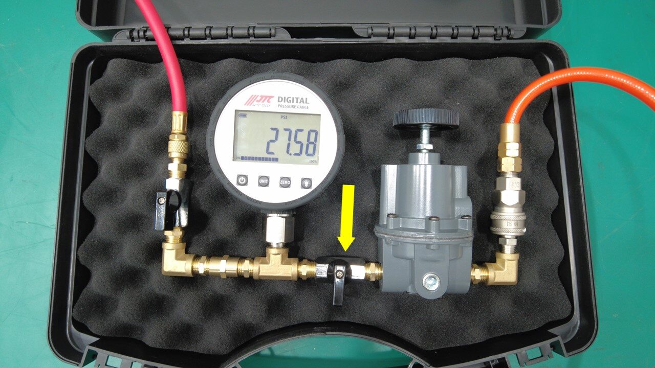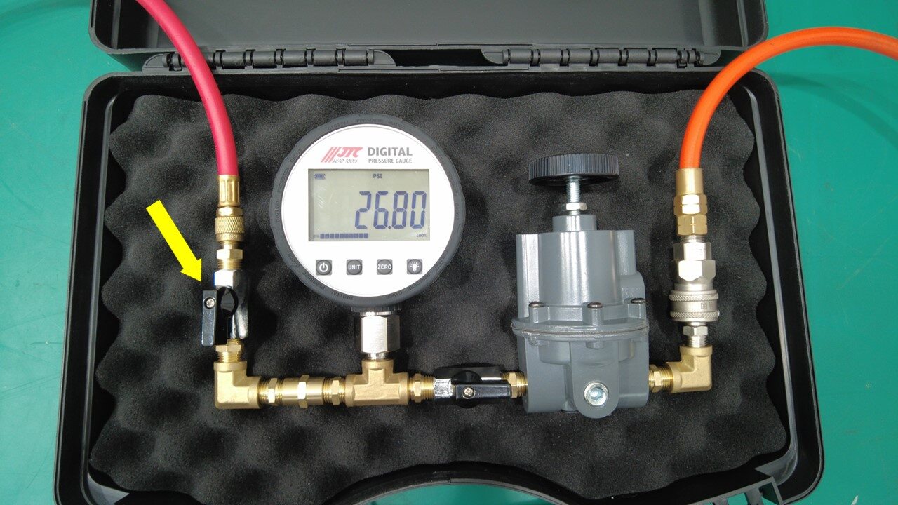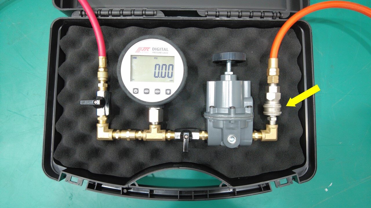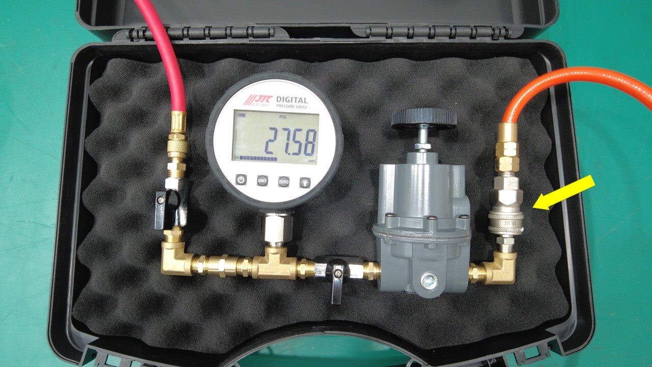 将压缩空气管路连接到冷却液压力测试仪。