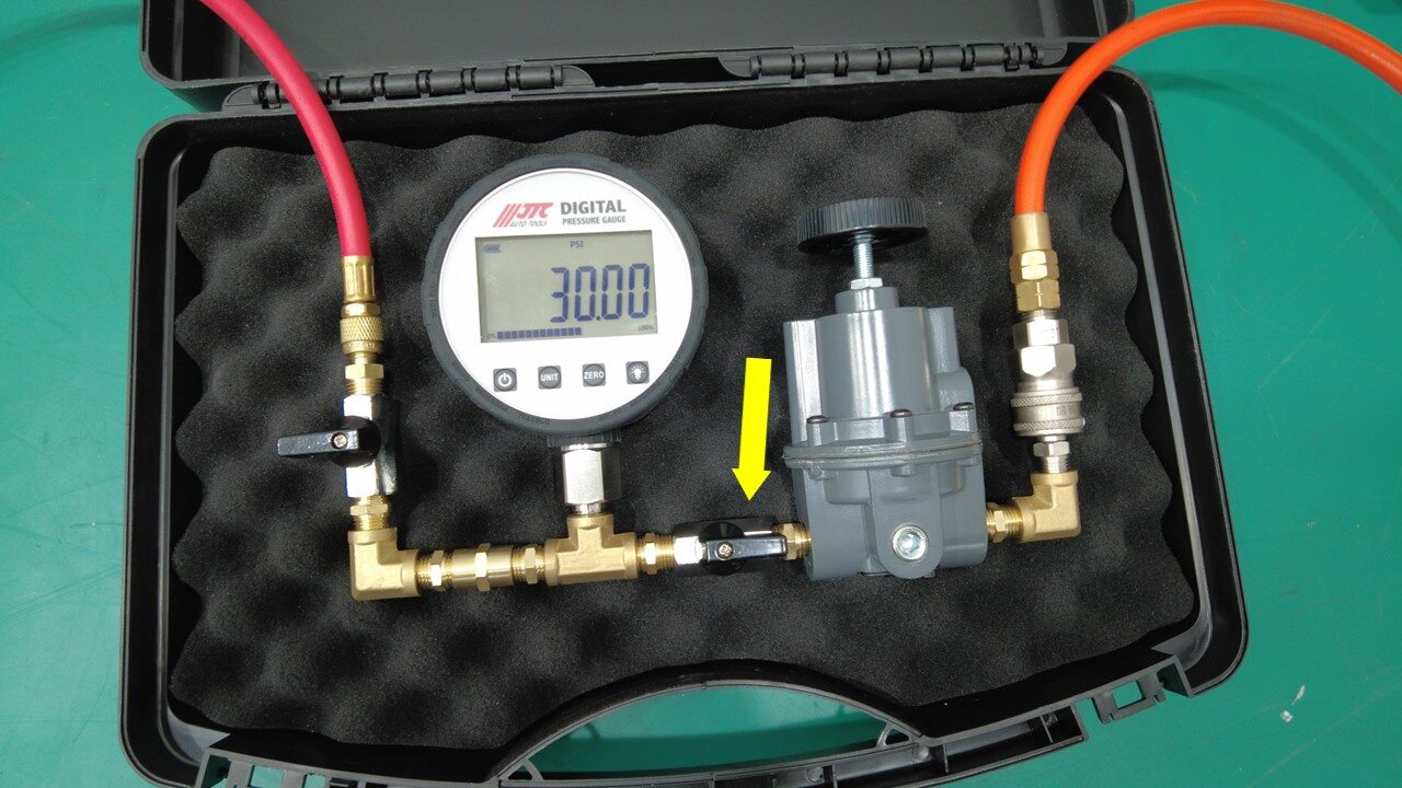 打开右侧调压器阀门,然后将调压器缓慢调节至 30 psi。