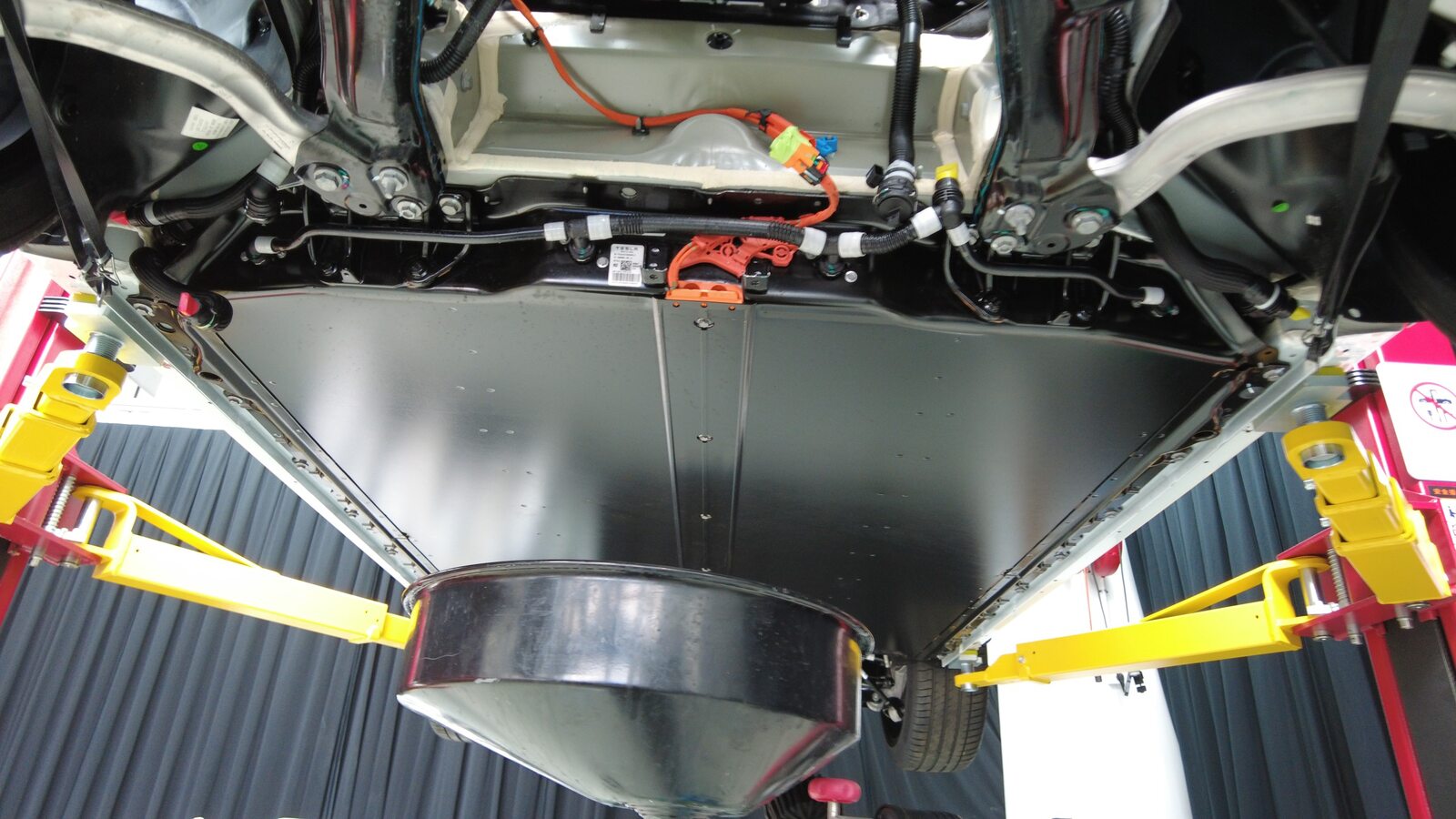 将冷却液排放容器放置在高压电池前部下方。