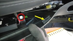 注先松开下部卡子,再拆下上部定位夹。警告请勿在此时完全拆下侧护板总成,以免损坏饰板、开关组件和/或线束。
