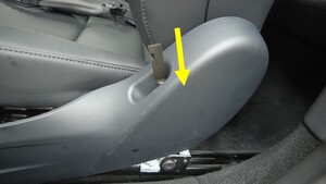 先向外再向上拉动外侧护板后部,从而松开将驾驶位座椅外侧护板总成固定到车辆的卡子(4 个),然后将外侧护板总成从车辆上拆下。