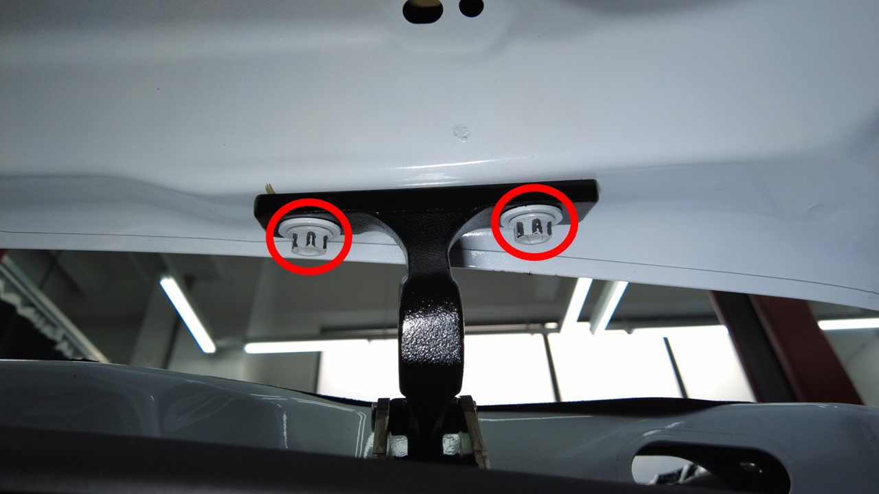 将新的掀背尾门左右球头销支架安装到掀背尾门上。