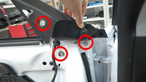 拆下橡胶塞,以便接触将左外后视镜固定到车门的螺栓。