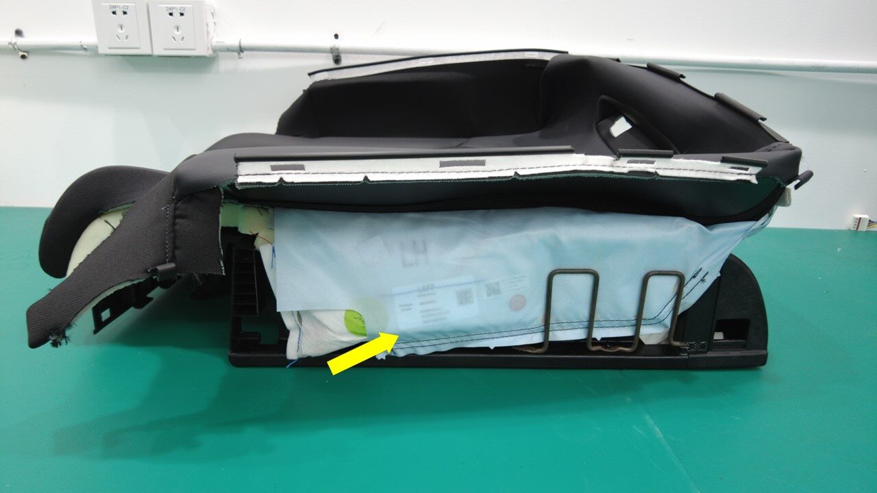 将第三排左侧座椅头部侧气囊放置在座椅框架上。