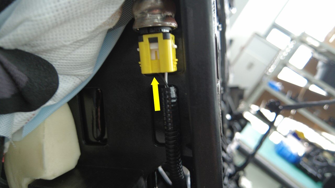 断开第三排左侧座椅靠背倾角调节电机连接器。