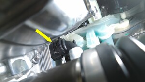 取下接头端部的塞子,然后安装弹簧夹,将前驱动单元变流器软管连接到前驱动单元热交换器。